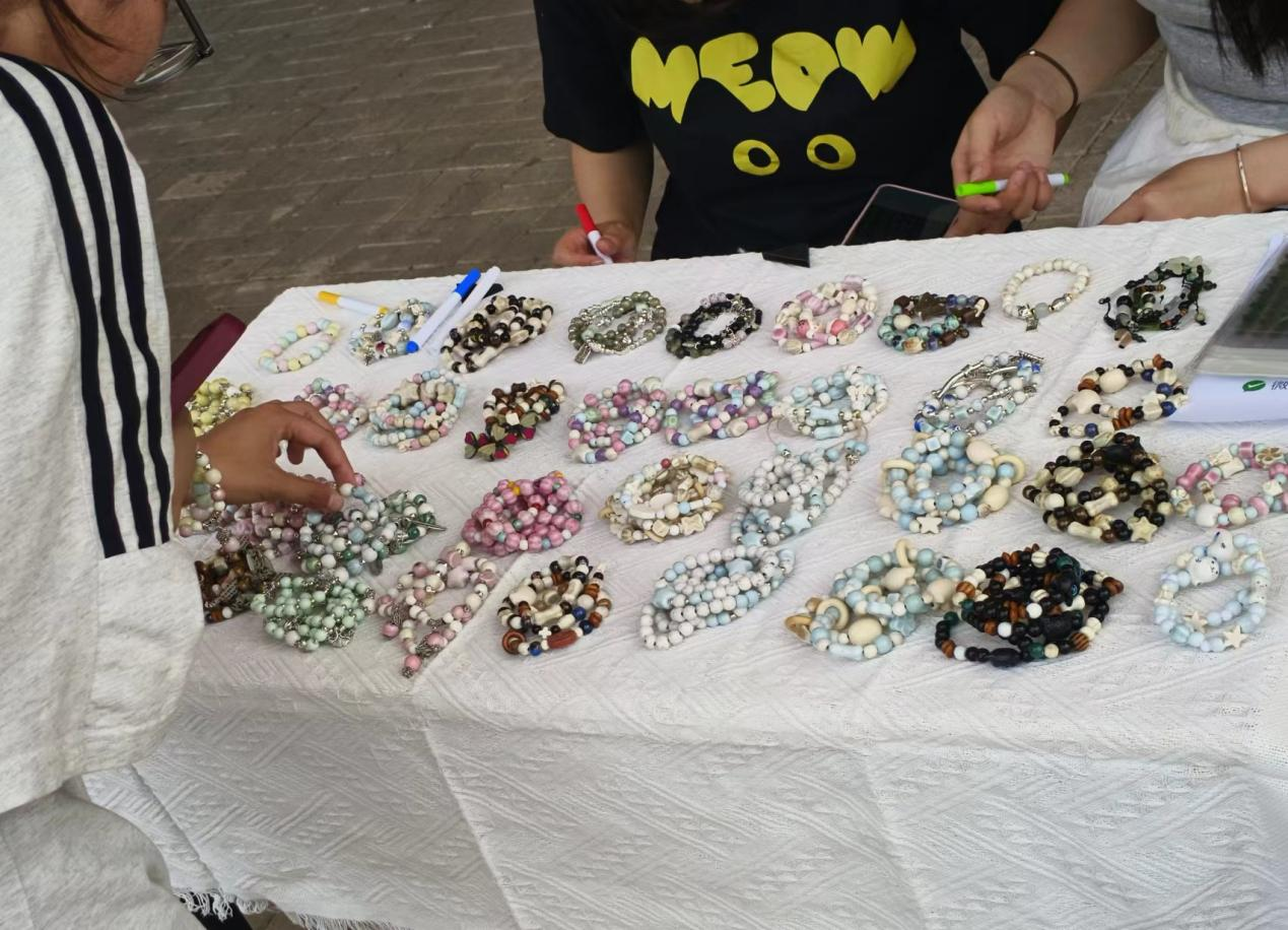 活动现场,摊主们将自己的物品搬运到跳蚤市场的摊位上。她们将物品摆放整齐并附上价格标签,不久后同学们逐渐来到跳蚤市场。摊主们开始忙碌起来了,与他人交流、展示自己的物品,并与对方协商价格,最后双方获得自己心仪的物品。