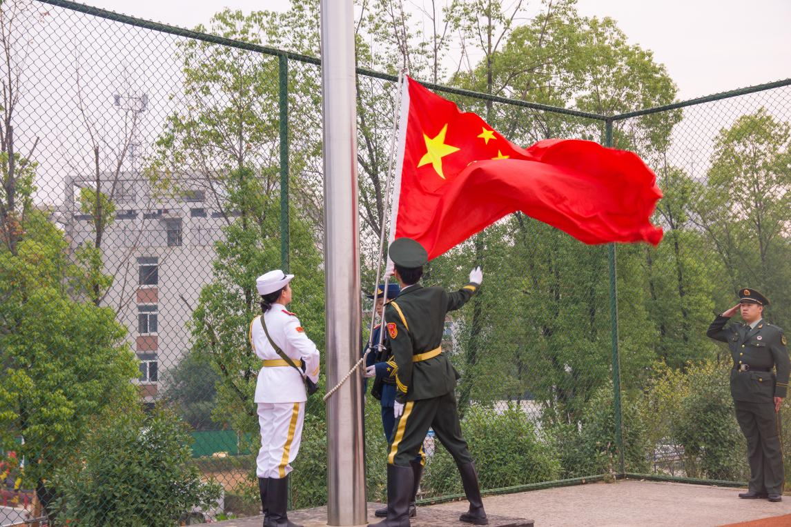 早上7:00,庄严的升国旗仪式在晨光中开始。国旗护卫队迈着铿锵有力的步伐,护送国旗入场。在激昂的国歌声中,五星红旗冉冉升起,全体师生行注目礼,高唱国歌,现场气氛庄严肃穆。