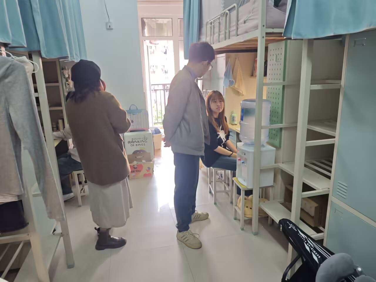 各查寝小组按照既定分工,有序进入负责楼栋及宿舍开展全面检查工作。检查过程中,师生团队围绕三类关键内容开展细致核查:一是宿舍安全隐患专项排查,重点核查是否存在使用大功率电器、违规用电等行为,从源头上杜绝电气火灾等安全风险,筑牢宿舍安全第一道防线;二是宿舍规范管理落实检查,仔细排查是否存在违规饲养宠物、私自开展校园经商及其他违反宿舍管理规定的行为,全力维护宿舍公共秩序与和谐氛围;三是宿舍卫生环境督导提升,对宿舍内务整理、卫生清洁状况进行全面评估,积极引导学生养成良好生活习惯,共同营造整洁舒适、文明有序的居住环境。
