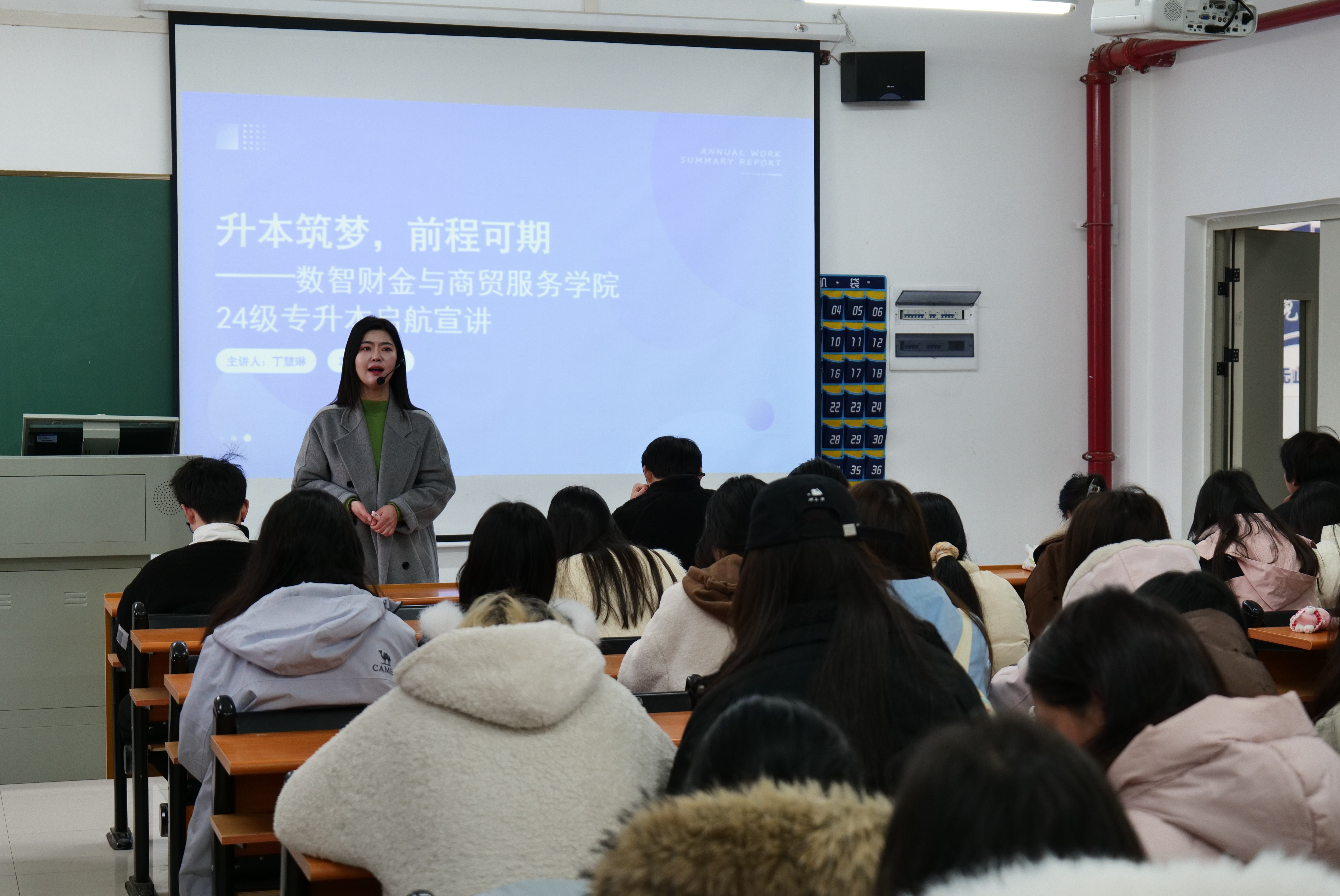 为帮助24级学生明晰专升本发展方向,精准掌握湖北专升本政策要点,搭建科学备考体系,3月7日,武汉外语外事职业学院数智财金与商贸服务学院在 3 号教学楼 603教室举办“升本筑梦,前程可期”专升本启航宣讲会。学院党总支副书记丁慧琳担任主讲人,24 级全体辅导员及学生共同参与,现场学习氛围浓厚,互动热烈。