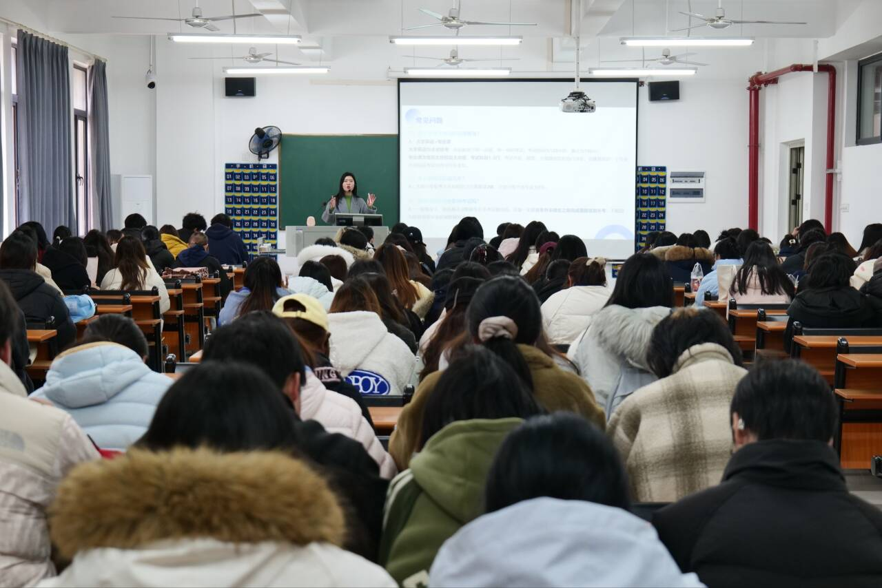 针对学生备考过程中可能遇到的复习方向模糊、时间紧张、缺乏专业指导等问题,丁慧琳副书记详细介绍了学院校内学科及专业素养培训计划,从集中培训的必要性、培训内容安排、增值服务、报名方式等方面进行具体说明。此次培训将开设英语课、专业课核心课程,提供学分置换、网课配套、志愿填报指导、个性化学习方案定制等十余项增值服务,还为学生预留了充足的复习时间,支持学生第五学期留校备考,切实为学生升本之路保驾护航。同时,她还为学生分享了省内 49 所专升本招生院校的招生简章参考链接,助力学生结合自身情况合理选择报考院校。
