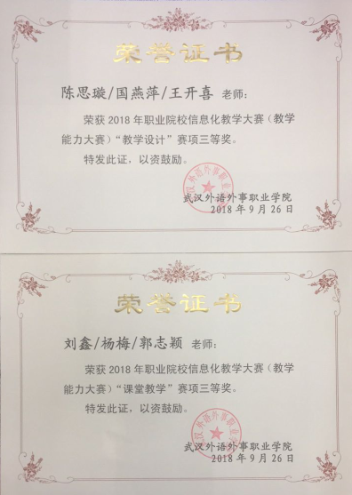 刘鑫、陈思璇等人获得2018年学院信息化大赛三等奖