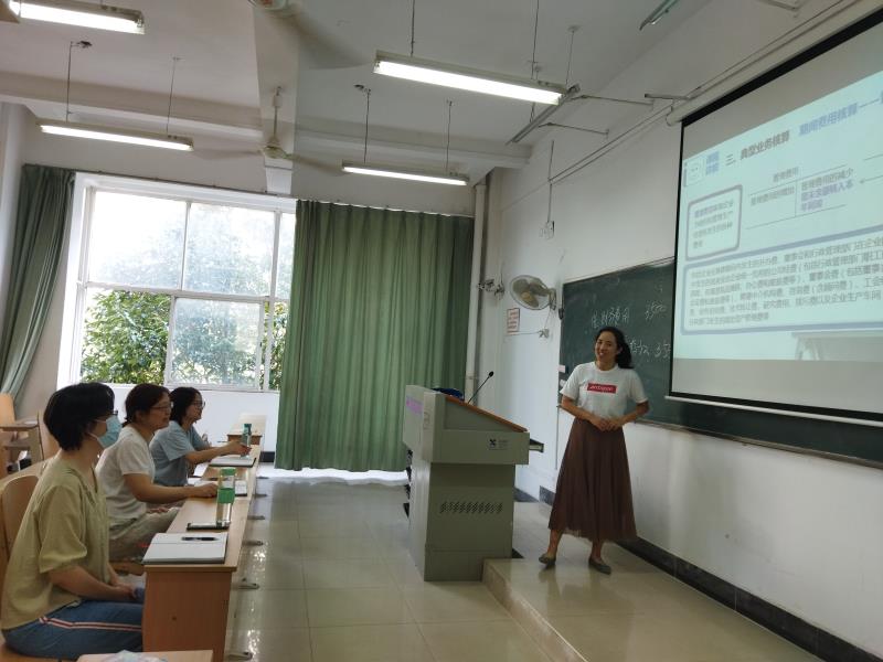 按照学部关于本学期大数据与会计专业建设诊改实施方案要求,特召开本次会议。 一、对上学期及暑假《企业财务会计》课程诊改情况进行小结 1.上学期所开设的《企业财务会计》课程是2020级会计专业学生所上的第一门专业核心课程,对职业技能的培养和形成十分重要,本课程是由国燕萍和王玉亭两位老师进行授课。 2.两位老师在上课时基本做到了一起备课、一起商讨教案的内容、一起探讨教学各个环节的实施细节。 3.在暑期,除4项诊改质控点由于客观原因没有提交诊改平台以外,本门课程的诊改资料已按学院要求提交,现等学部和学院审核之后,根据要求再进一步优化。 二、演练《企业财务会计》启林比赛节段,探讨改进教学手段和方法的途径 1.王玉亭老师对《企业财务会计》课程中的学习情境九之任务一之中的核心知识点——期间费用会计处理进行20分钟讲授演练