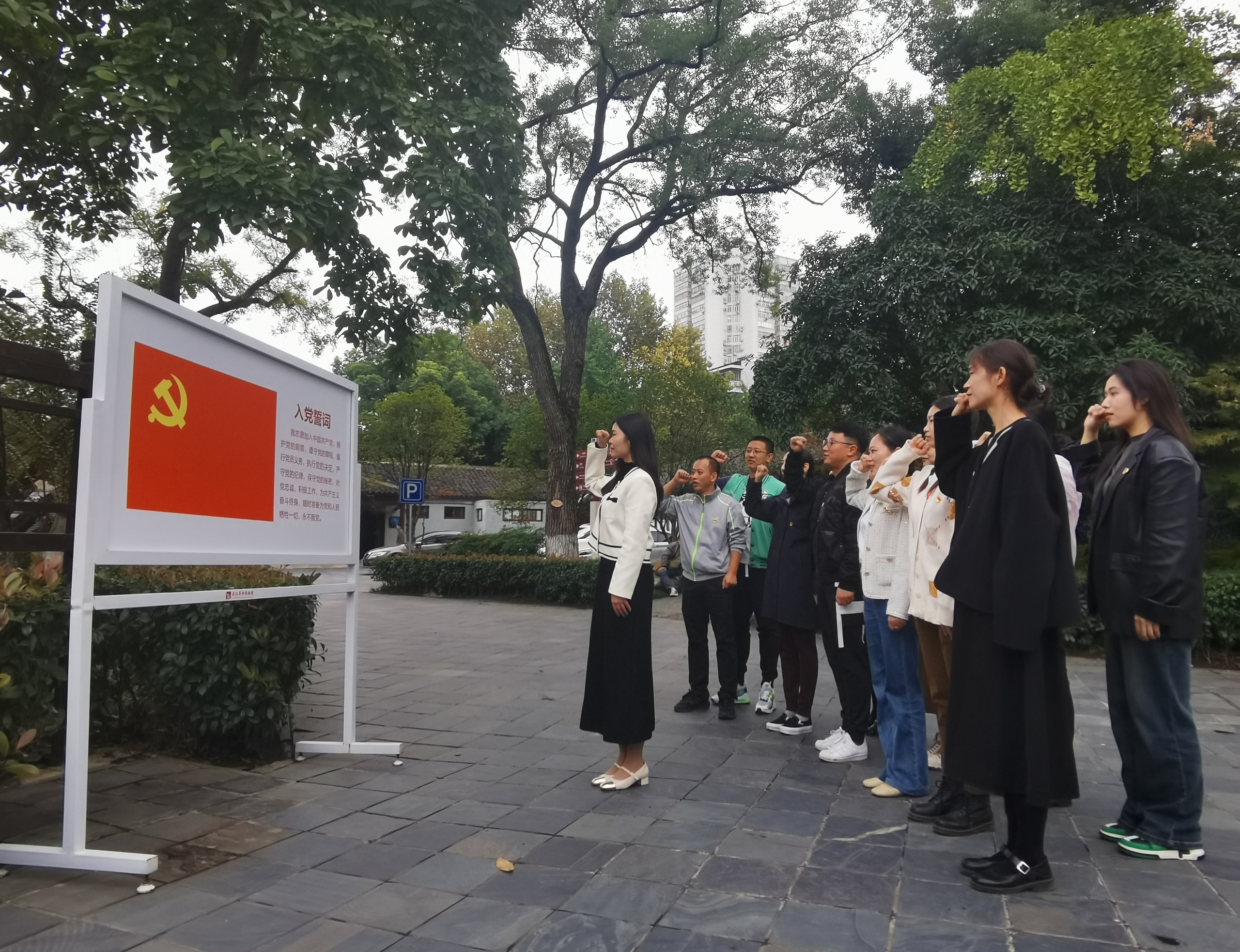 下午16:00,在周恩来总理题词的“毛泽东同志主办的中央农民运动讲习所旧址”门匾下,全体教工党员同志庄严地举起右拳,重温入党誓词,表达为党的事业奋斗终身的决心。