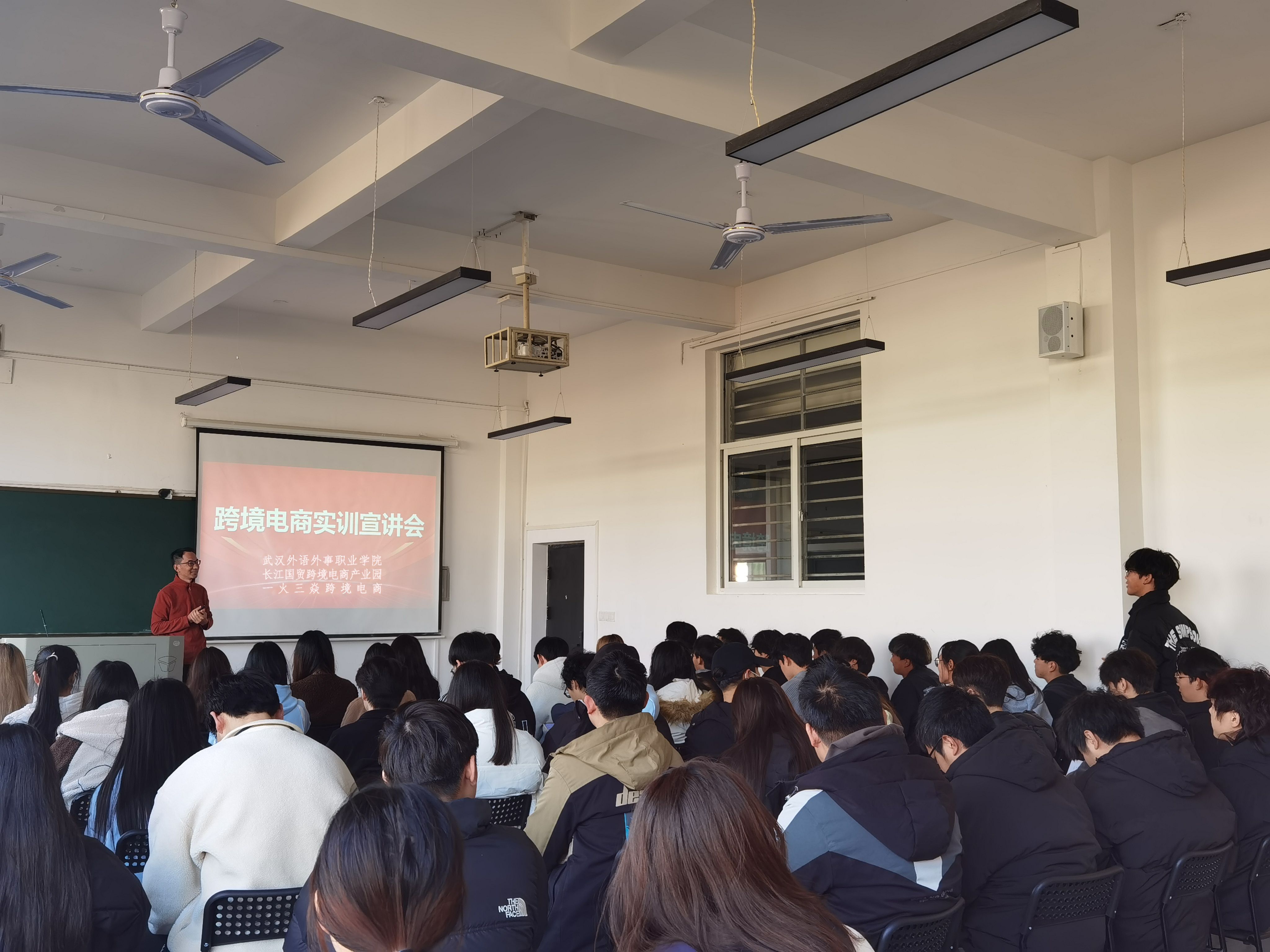 11月28日,一场主题为“跨境电子商业领域产教融合实训项目”的宣讲会在南七教学楼402教室成功举办。本次宣讲会学部邀请了武汉一火三焱CEO李威和上海领宙武汉运营负责人杨成老师作为主讲嘉宾,旨在让学生们了解跨境电商行业及其发展前景,并促进他们的实训实践能力提升。