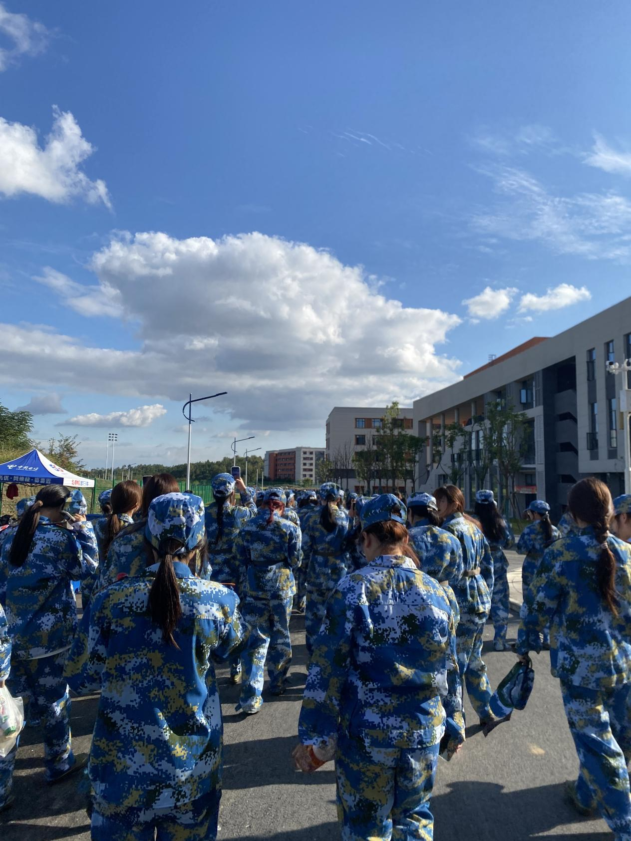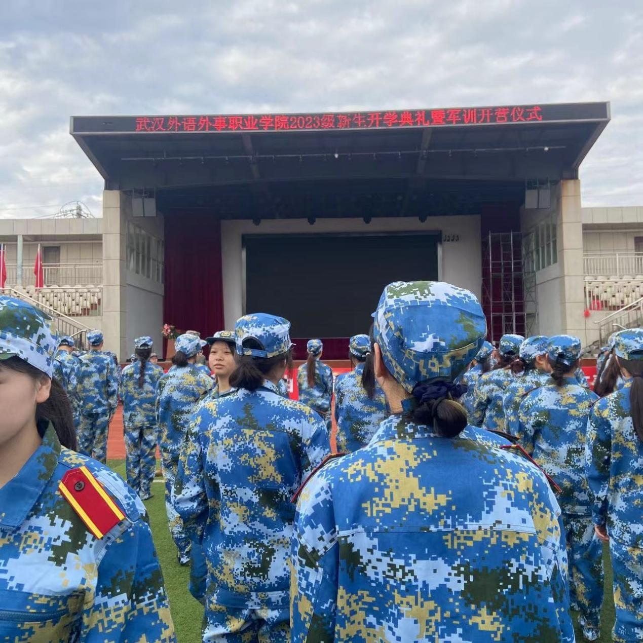 2023年10月9日,武汉外语外事职业学院5000余名2023级新生身着迷彩服参加军训。