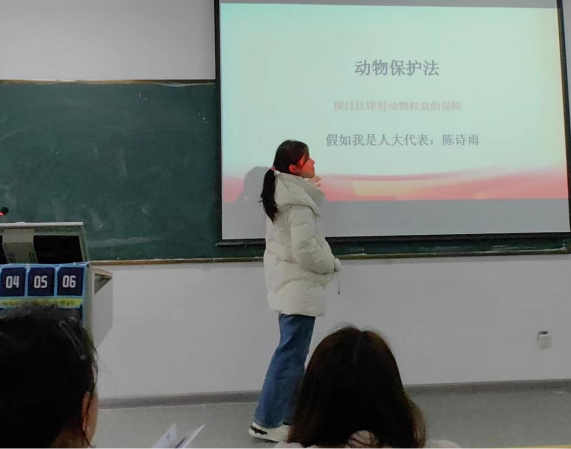 此次课程围绕实时热点制作PPT并进行演讲展开相应的趣味活动。接着,老师带领同学进入了角色扮演的环节——“假如你是人大代表你会提什么案”。在这个环节中,向雪要求学生们站在更宏观的层面思考问题,从而拓宽视野,增强解决复杂问题的能力。学生们提出的议案有的关于完善劳动合同法的议案,有的则关注职业培训体系的改进涉及劳动保护、职业教育发展、人才流动机制等多个方面,展现了他们对社会问题的深刻理解和对未来的积极构想。学生们站在立法者的角度思考社会问题,提出切实可行的议案。这不仅是对法律知识和社会责任感的一次了解,也激发了学生们的创新思维和社会参与意识,展现了学生们对社会现实的深刻洞察力和解决问题的能力。