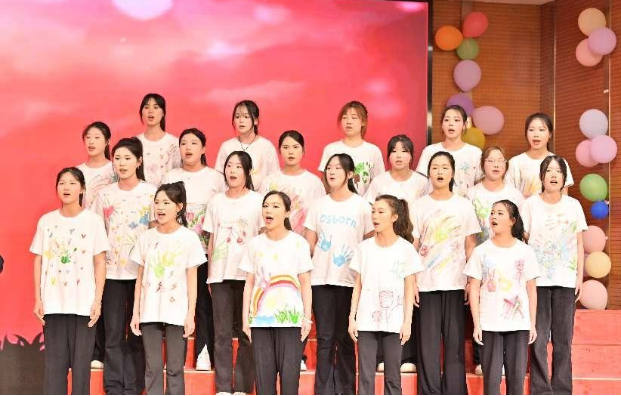 此外,本次合唱团的参赛服装更是别出心裁。服装的设计采用了彩色手绘,由同学们根据活动主题随意发挥想象,这些手绘图案丰富多彩,其中包含了花朵、手印、爱心、飞鸟、蝴蝶、太阳、彩虹、小草、星星等元素,寓意着青春的多彩和活力。这些手绘图案不仅展示了同学们的创意和才华,也为整个演出增添了一抹亮丽的色彩。