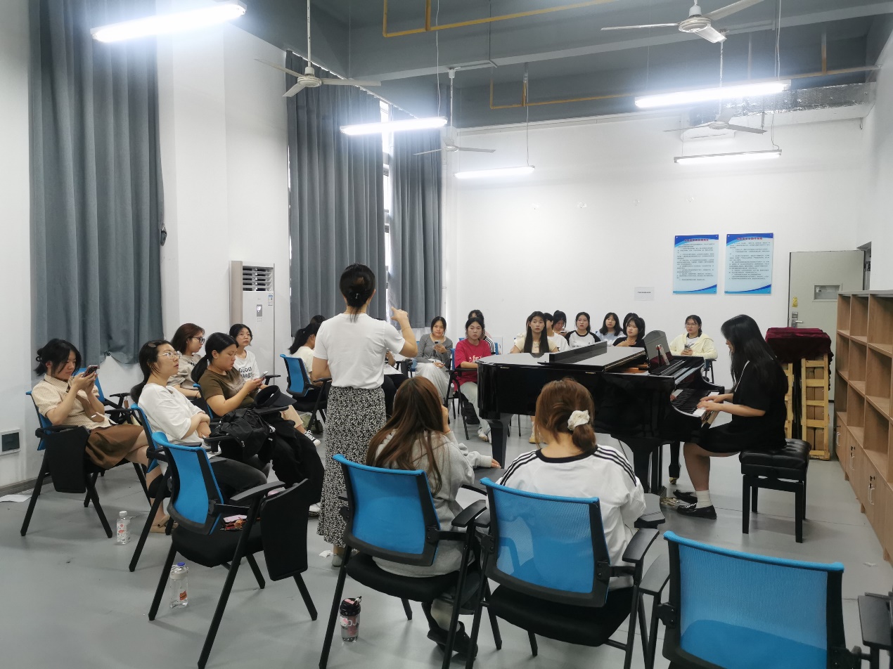 教师党支部书记蔡霞多次和王老师沟通后,建议王老师在教授儿歌弹唱时进行改变创新,王诗扬从学校组织的五四红歌合唱比赛中获得灵感,让学生用《歌唱祖国》的旋律演唱儿歌《小星星》,5月23日下午,蔡霞来到23级1班《儿歌弹唱》课堂,学生们同上一堂课,共同合唱改编后的《小星星》。课后,蔡霞和学生们交流,作为一名未来的幼儿教师,我们必须具有优秀的思想道德修养,在学校学习期间要树立正确的人生观和价值观,善于发现生活中的真善美,并能用幼儿乐于接受的方式教授给他们,特别是通过潜移默化的方式感染幼童,如传承经典的红歌旋律用孩子们喜欢的儿歌歌词演绎就是值得借鉴的方式,王老师的课堂给了大家很多的启发,希望同学们不但在课堂上学会知识,更要培养创新意识。