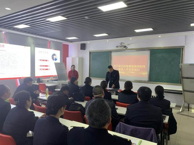 此次培训是系列培训的第一波,教学团队教师之一的祝晓春老师,分别于3月12日和14日赴武汉客运段培训中心,就新专列沿线旅游地理知识、旅游者服务技巧协助客运段新辟旅游专列的员工进行专项培训。帮助客运服务人员为旅客打造更加优质、个性化的旅游出行体验做好准备。