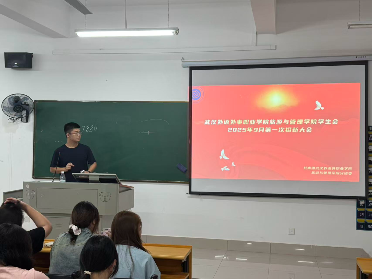 新闻网讯(记者 查李琪)为推动院学生会工作开展,2025年9月22日晚6点J508室,旅游与管理学院学生会第一次招新大会正式拉开帷幕,现场气氛热烈,新生们踊跃参与。