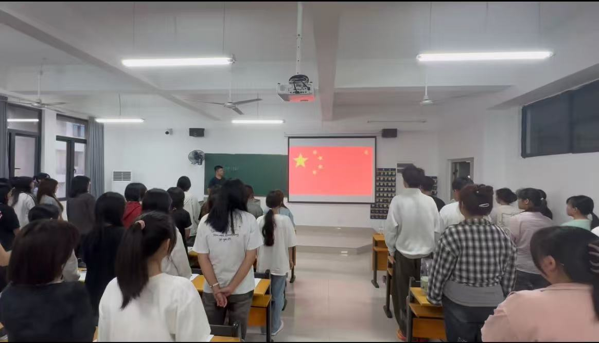 大会伊始,全体成员齐唱国歌,嘹亮的歌声在教室中回荡,彰显出同学们对学生会工作的庄重态度与赤诚热忱,也为本次招新大会奠定了严肃且积极的基调。