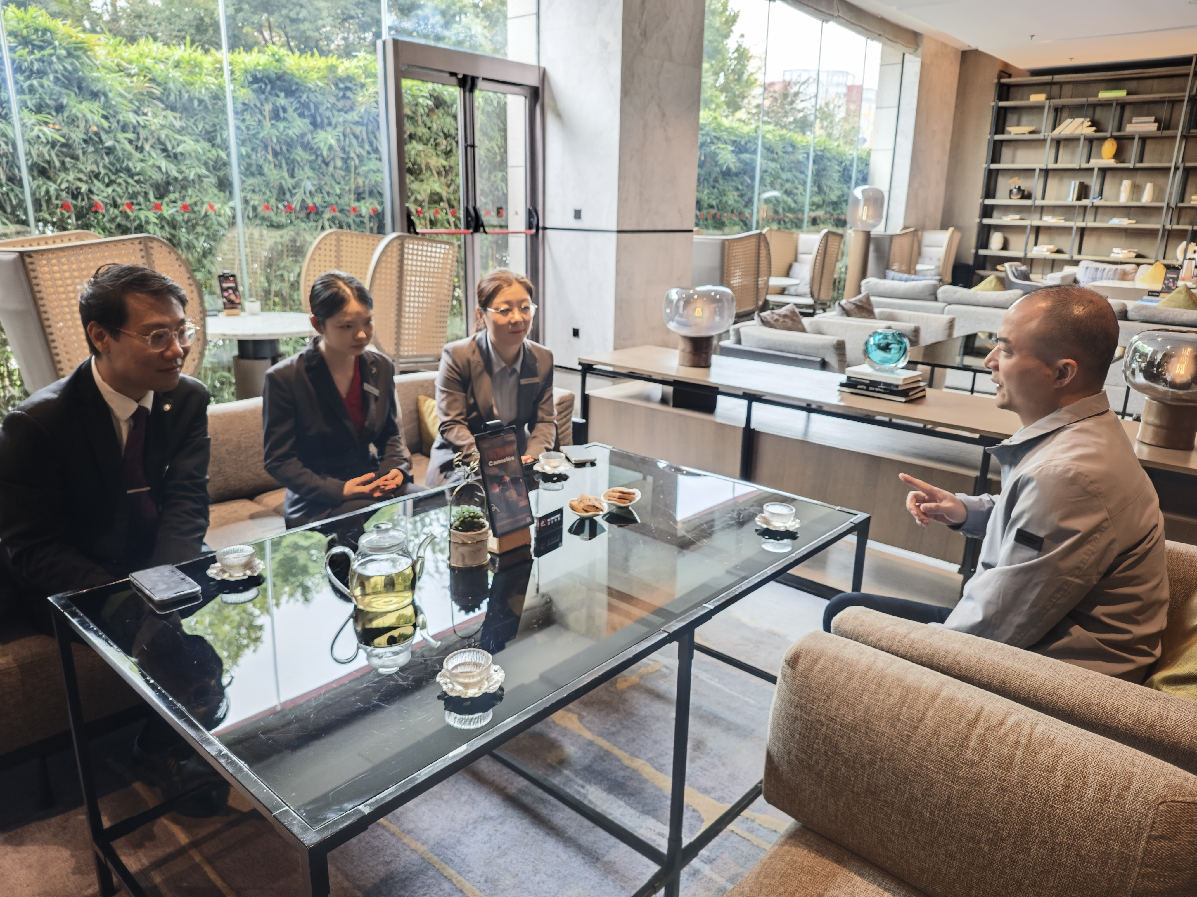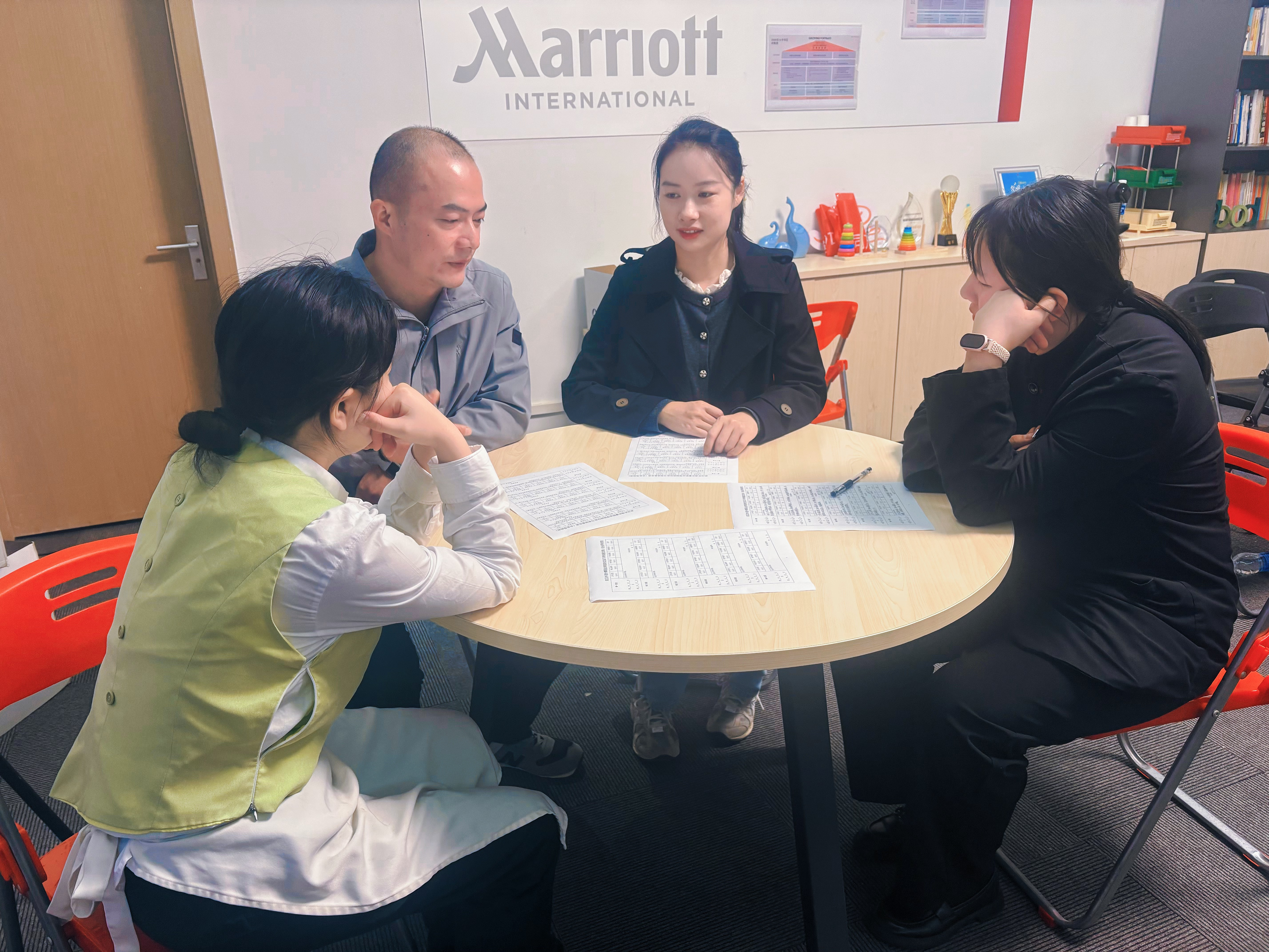 随后,师生与酒店方围绕实习情况展开三方座谈。三名实习生分享了实习收获:从最初对岗位流程的陌生,到如今能独立应对客户需求,实习不仅提升了沟通协调与应急处理能力,更让她们对酒店行业的运营逻辑有了更深的理解。同时,她们也坦诚反馈了实习中遇到的困惑,如高峰期工作节奏的把控、跨部门协作的细节以及岗位适配与实习手册填写的疑问。