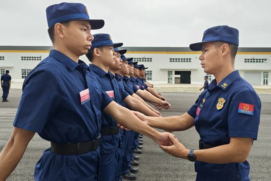 “嘟——”响亮的哨声刺破黎明,作训鞋踏碎晨露,李文琦同学与消防队员们一同迅速集结,投入晨间训练。从整齐的队列到铿锵的步伐,他在严格的作息与训练中,锤炼意志,培养纪律意识,展现出我院学子良好的精神面貌与适应能力。每日的早操不仅锻炼了身体,更培养了新消防员良好的生活习惯和严明的纪律作风。