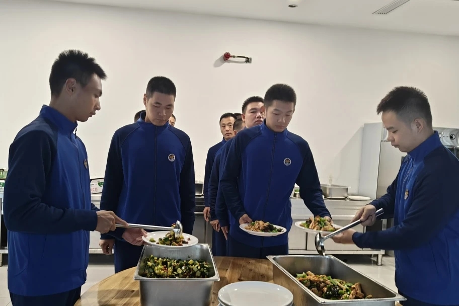 午餐时间,在集合开饭哨声响起后,新消防员迅速集合完毕,唱响“饭前一支歌”,有序排队就餐。多样的饭菜搭配合理、营养均衡,确保新专职消防员不仅吃得健康、满意,更能吃出幸福感和战斗力。