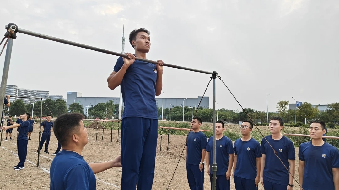 下午的训练是新消防员最期待的时刻之一。无论是技能训练还是体能训练,他们都全力以赴、挥洒汗水。在训练中,李文琦同学不仅增强了身体素质,更锤炼了坚韧不拔的意志品质,不断挑战自我,努力蜕变为合格的“火焰蓝”。
