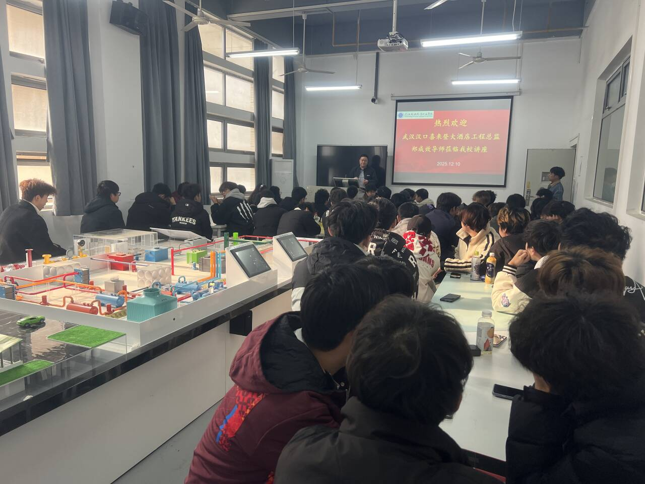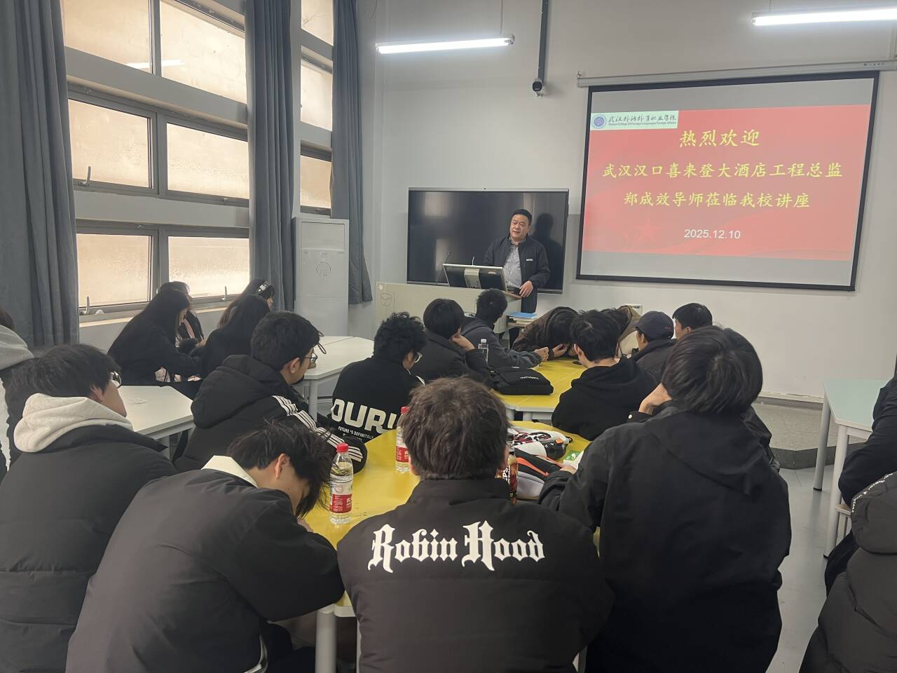 本网讯(通讯员 葛彪)2025年12月10日,旅游与管理学院特邀武汉汉口喜来登大酒店工程总监郑成效来校讲座,讲座以“智能机电技术在高端酒店场景的应用与创新”为主题,2025级智能机电技术专业学生参加。