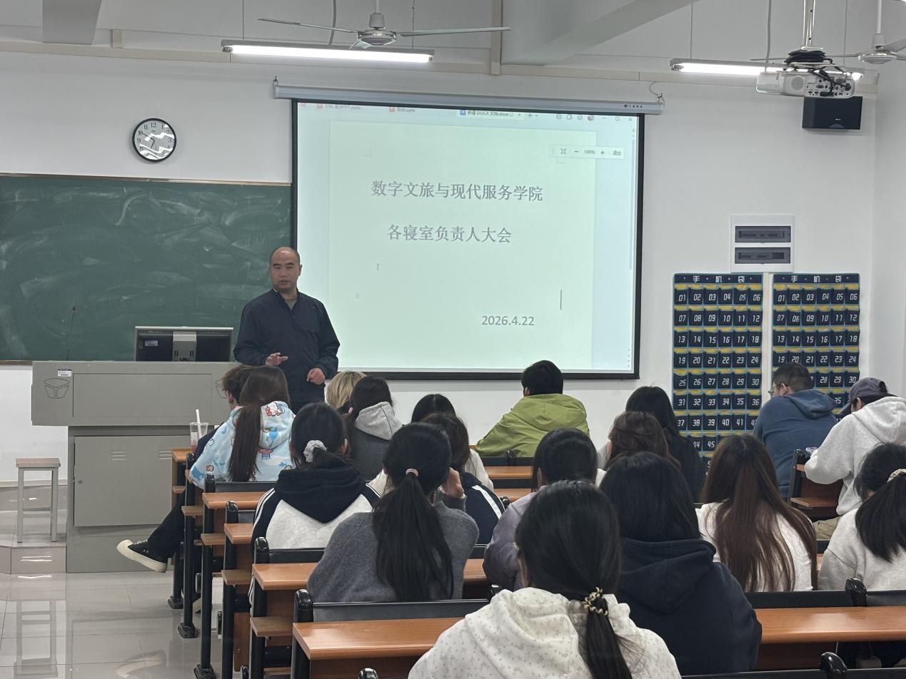 新闻网讯 (通讯员 秦奕霏)为进一步强化学生宿舍安全管理,营造安全、文明、和谐的住宿环境,2026年4 月 22 日,数字文旅与现代服务学院在三号教学楼召开各寝室负责人大会,学院赵书记出席本次会议并主讲,全体寝室负责人参加会议。