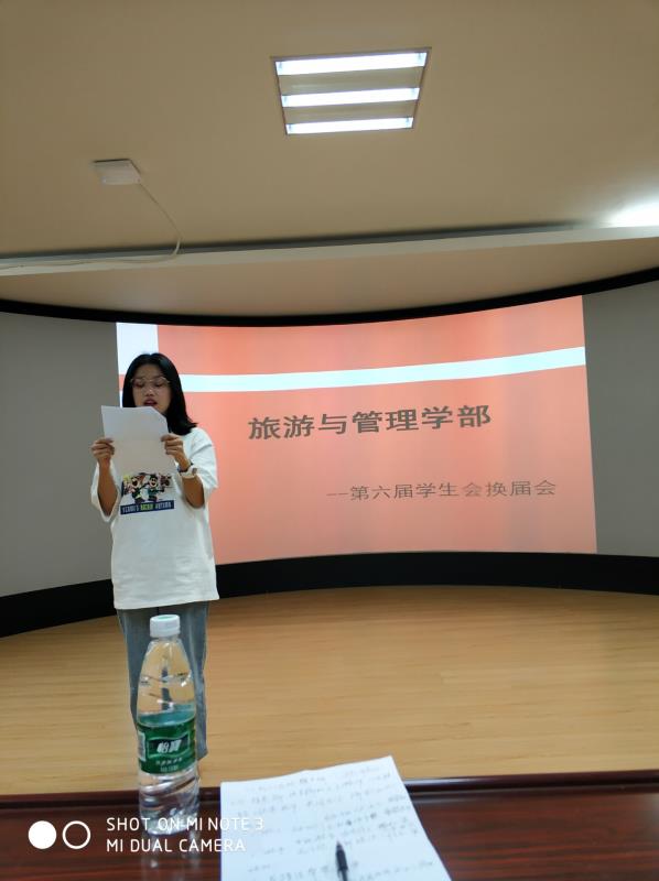 大会第一项,主持人宣布大会开幕并宣读第六届学生会成员名单。