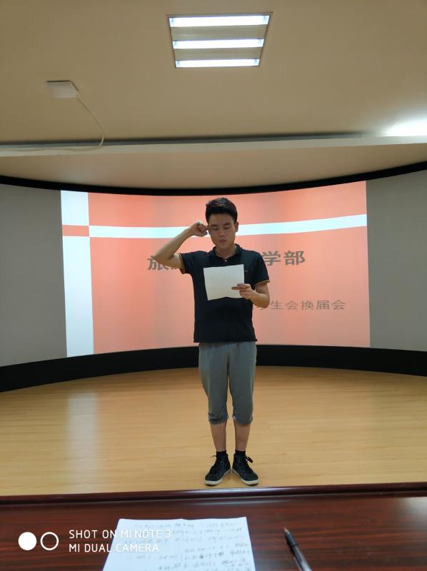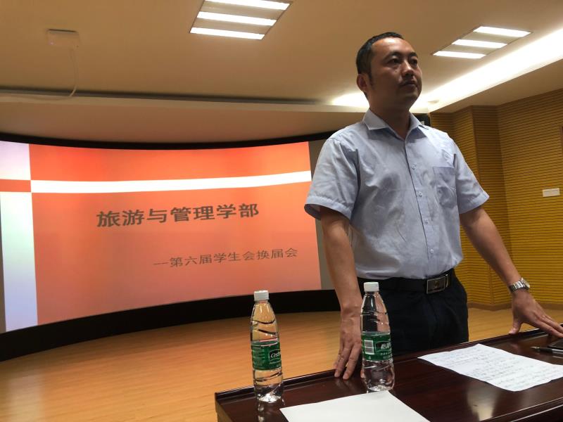 (王波供稿)2019年6月13日上午11:00,在3D模拟导游实训室,旅游与管理学部第六届学生会成立大会隆重召开,出席本次大会的有学部分团委书记王波老师、学生党支部书记王继老师、2017级辅导员王铭杰老师,以及第五届和第六届学生会成员。