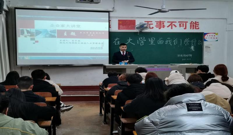 (通讯员 王晶)2020年12月10日下午4时,武汉外语外事职业学院旅游管理和国际邮轮乘务管理专业的全体学生在教学楼202教室听取了由湖北天屿湖假日酒店人力资源总监肖子遥演讲的“在大学里面我们学什么?”的主题讲座。肖总监主要从三个方面进行了讲述:一是学习如何保持心理和身体健康,二是学习自我魅力的塑造,三是学习人生礼仪。