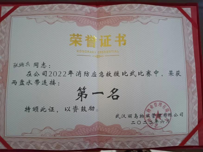 张绪兵获得丽岛物业消防应急救援比武大赛第一名