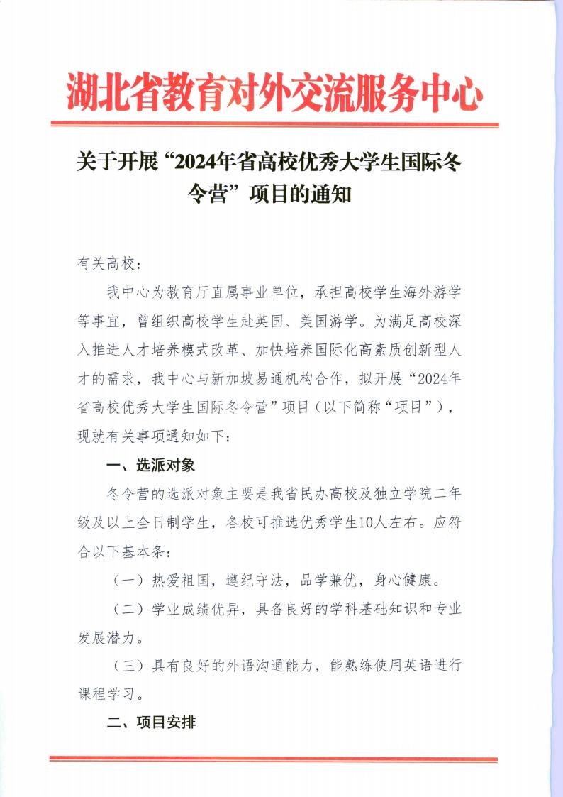 关于开展“2024年省高校优秀大学生国际冬令营”项目的通知.