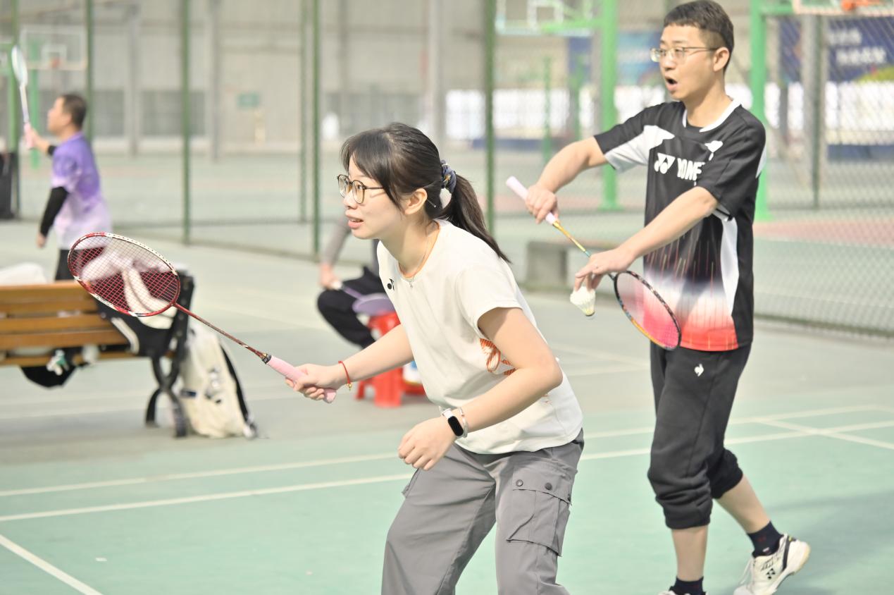 赛场上,参赛教职工们精神饱满、全力以赴,发球、接球、平抽挡、吊网前等动作衔接自然,展现出扎实的竞技功底。有的选手凭借精准的落点控制掌握主动权,有的则以果断的扣杀打破僵局,羽毛球在球网两端快速穿梭,时而轻巧回旋,时而迅猛飞驰。现场观众的加油声、球拍击球的清脆声交织在一起,氛围热烈而浓厚。