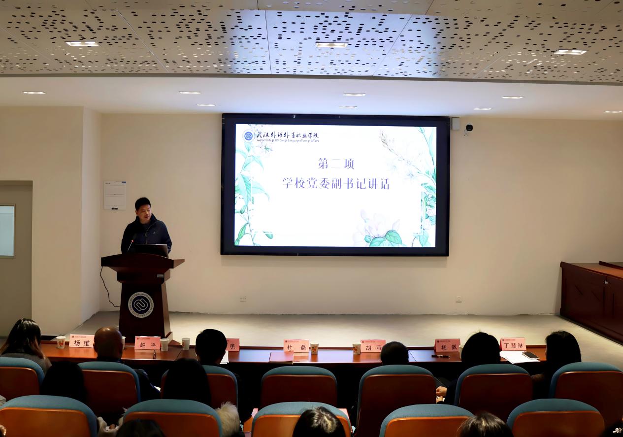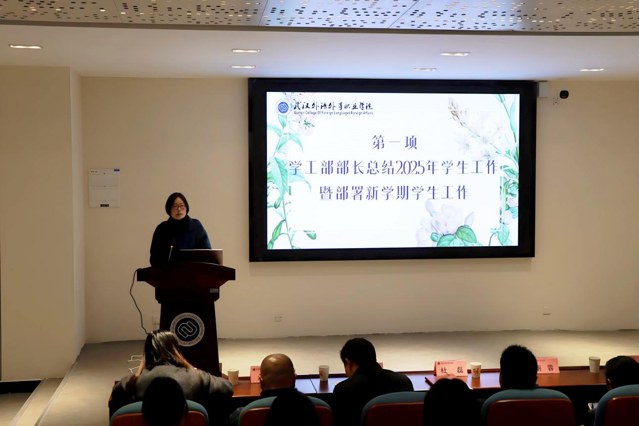 新闻网讯(通讯员 周浩雨)春回大地,万象更新。为深入贯彻落实党的教育方针,确保新学期学生工作开好局、起好步,3月10日,我校学工系统在图书馆J506报告厅召开了新学期学生工作部署会。校党委副书记、学生工作部部长、各二级学院党总支副书记、全体辅导员及学生工作部全体人员参加了会议。会议由学生工作部事务管理科科长周昕主持。