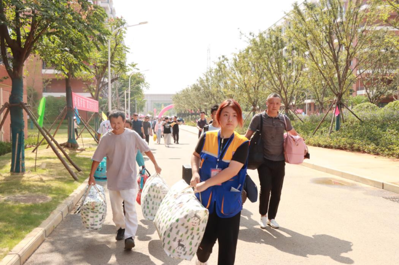 从学院大门到报到点,再到宿舍楼,每一个环节都有专门的志愿者引导和帮助,新生们对于志愿者们的辛勤付出表示感谢,一声声“谢谢”在校园中回荡,不绝于耳。志愿者们的热情服务,很快消除了新生们初来乍到陌生感。新生李唤星说:“一下火车,就有热心的学长学姐帮助我搬行李、领物品,给了我一种从未有过的亲切感,也缓解了自己刚进校的紧张情绪。”与她随行的家长说:“一开始担心孩子适应不了南方的生活,但是看到学院优美的环境,感受到同学们热情的服务,我们没有顾虑了,孩子在这里学习和生活,我们放心。”