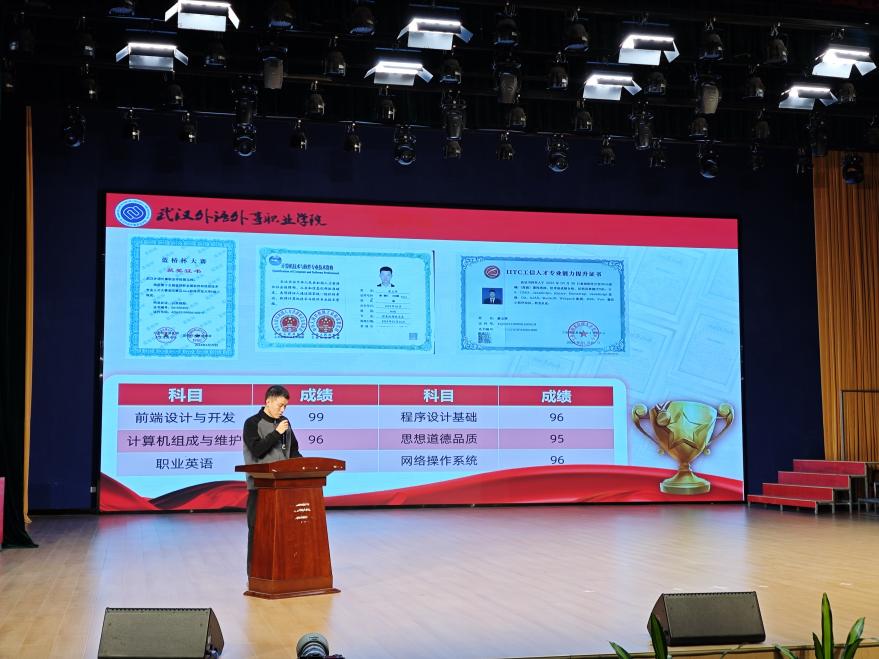 活动伊始,主持人详细介绍了活动背景与核心意义,向新生们隆重介绍了到场的优秀学子代表。这些榜样涵盖专升本成功学子、国家奖学金获得者、学科竞赛佼佼者及综合素质标兵,他们用自身经历为新生搭建起一座“成长桥梁”。在专升本逐梦经验分享环节,彭玉晗学长结合自身从武汉外语外事职业学院升入武汉城市学院的经历,深情回望奋斗足迹。他围绕专科阶段学业规划、专升本备考难点拆解、目标院校选择技巧及高效学习方法等核心内容,毫无保留地分享实战经验,为有专升本意向的新生解锁“通关密码”。