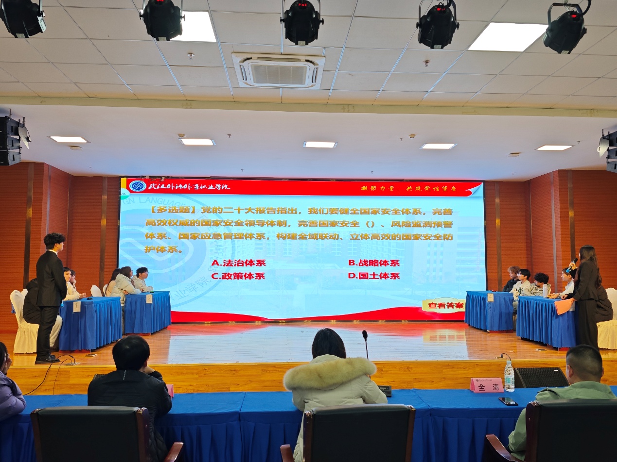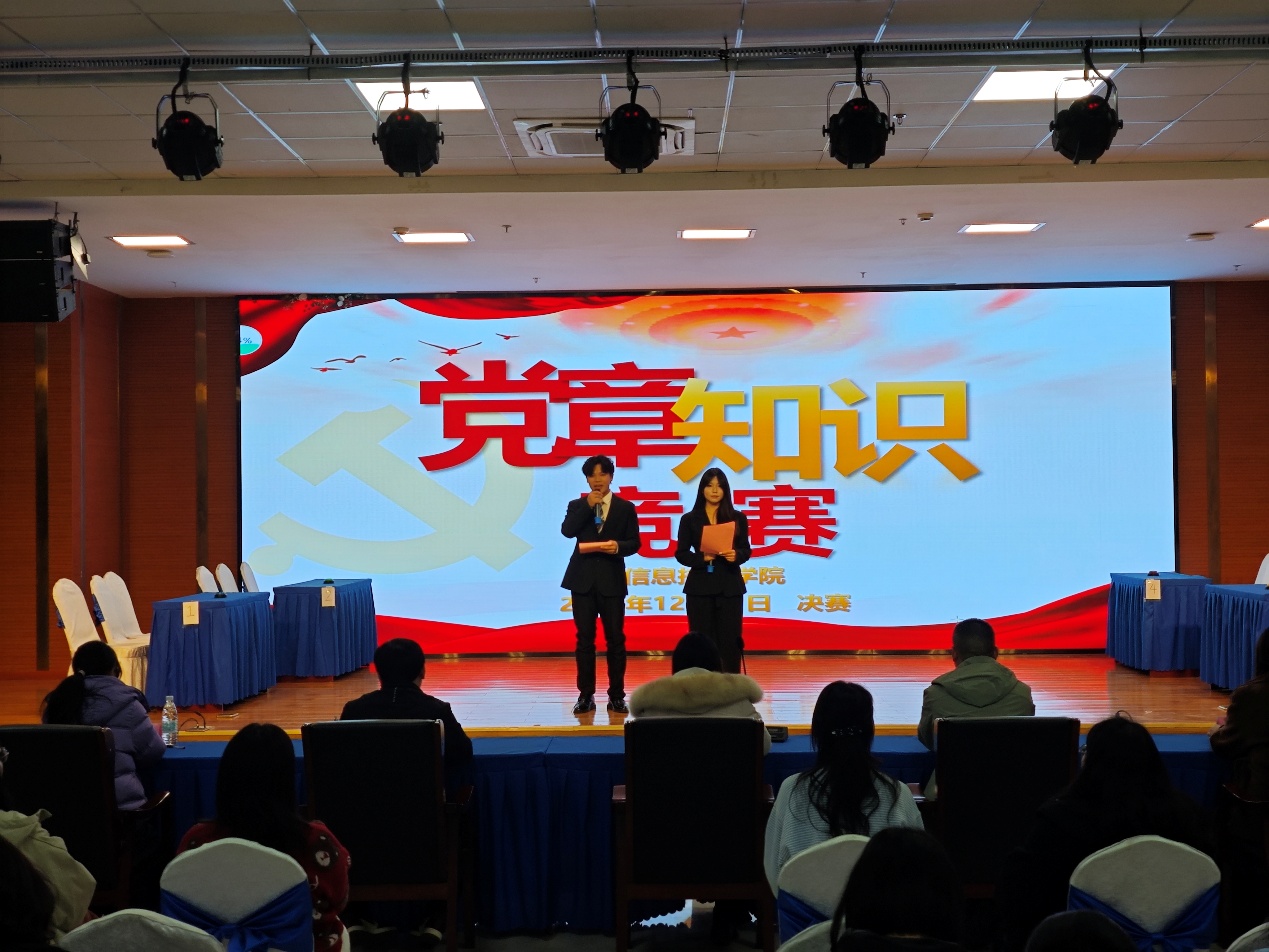 (信息技术学院 通讯员 石娟 林诗怡)为深入学习贯彻习近平新时代中国特色社会主义思想和党的二十大精神,推动全院上下形成学习党章、遵守党章、贯彻党章、维护党章的浓厚氛围,武汉外语外事职业学院信息技术学院党建会于2025年12月11日18:00点在大学生活动中心成功举办党章知识竞赛总决赛。经过前期班级、年级初赛层层选拔,来自学院各专业的12支代表队齐聚一堂,以赛会友、以赛促学,展现新时代青年入党积极分子和同学们的理论素养与精神风貌。