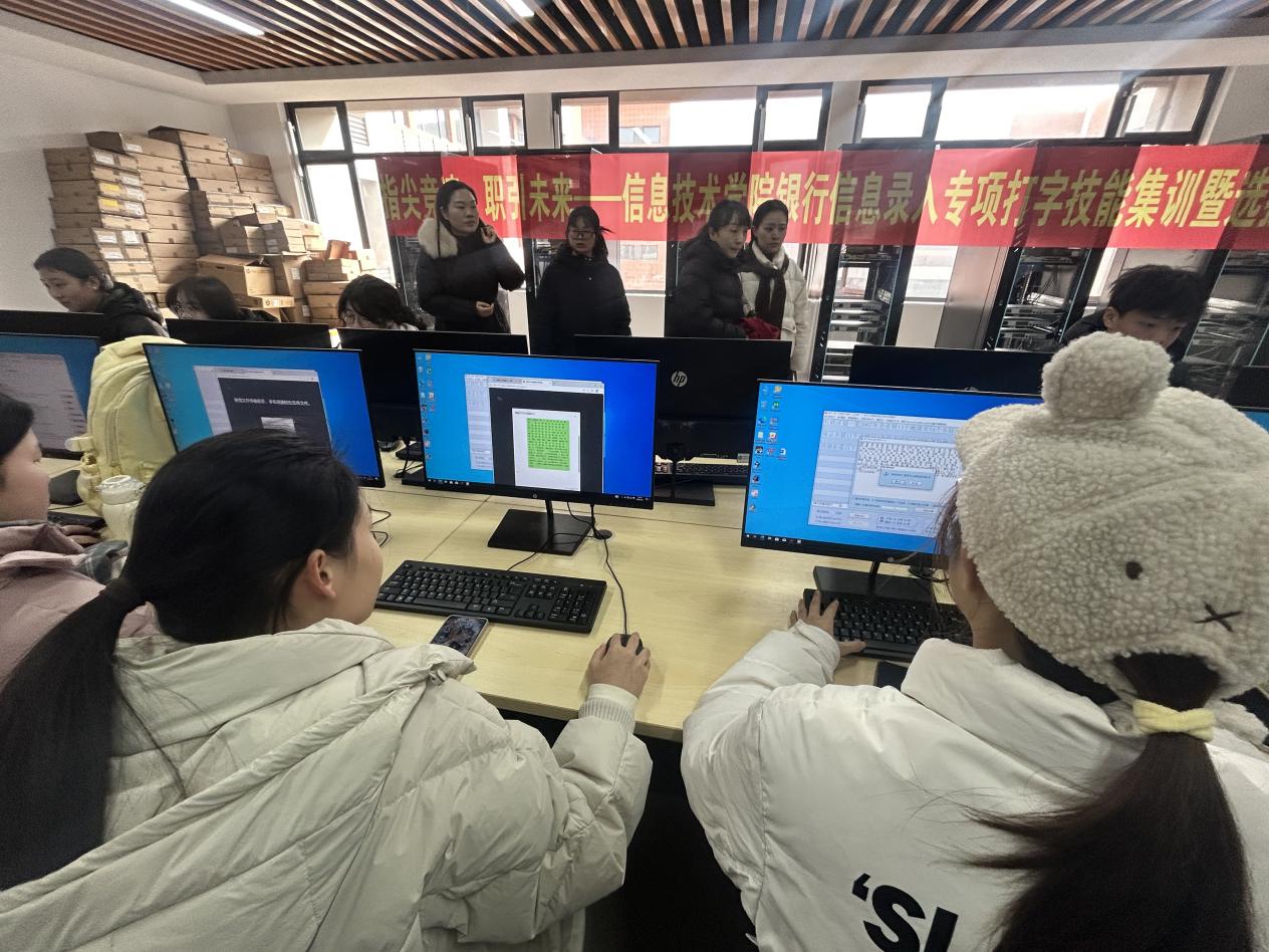 (信息技术学院 通讯员 张莹)2026年1月5日中午12点10分,信雅达(杭州)计算机服务有限公司在学校5号实训楼510教室为信息技术学院2024级学生举办专场宣讲会,并同步举办了“指尖竞速 职引未来——信息技术学院银行信息录入专项打字技能集训暨选拔赛”。信息技术学院党总支副书记杨维、2024级辅导员石娟、康曦子、李欣影及综合科张莹老师出席活动,信雅达公司武汉地区负责人陈晓玲、徐丽共同参与,现场气氛热烈,互动频繁。