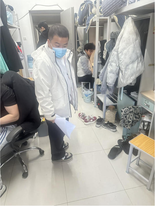 每天午休时段,赵老师总会随机走访几间学生宿舍。他不像传统意义上的“检查者”,更像一位“生活顾问”——帮学生调整过于拥挤的插线板位置,提醒阳台杂物及时清理,甚至教男生们如何晾晒厚被褥。“赵老师从不板着脸批评,而是帮我们发现问题、解决问题。”学生小陈说。这种"沉浸式"管理方式让安全隐患在萌芽状态就被化解。