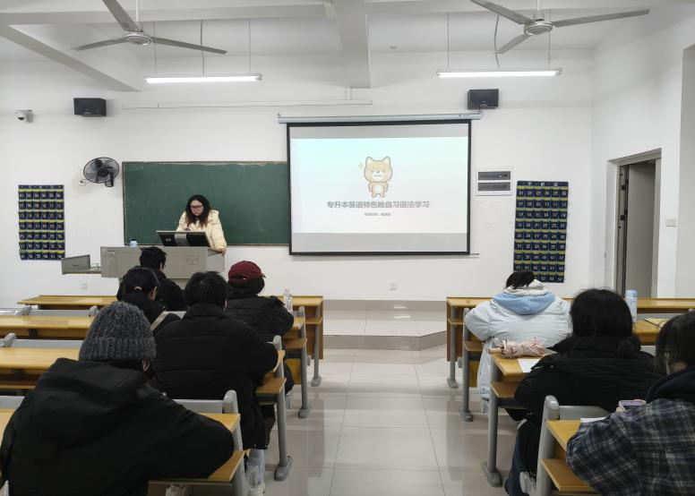 (信息技术学院 讯)为扎实推进专升本工作,有效提升学生英语基础与应试能力,2026年1月5日晚6点,信息技术学院面向专升本培训班学生组织开展了英语语法专项辅导课。本次课程由学院辅导员杨津哲老师主讲,以“趣味语法”为切入点,帮助学生在轻松氛围中掌握知识要点,增强学习信心。