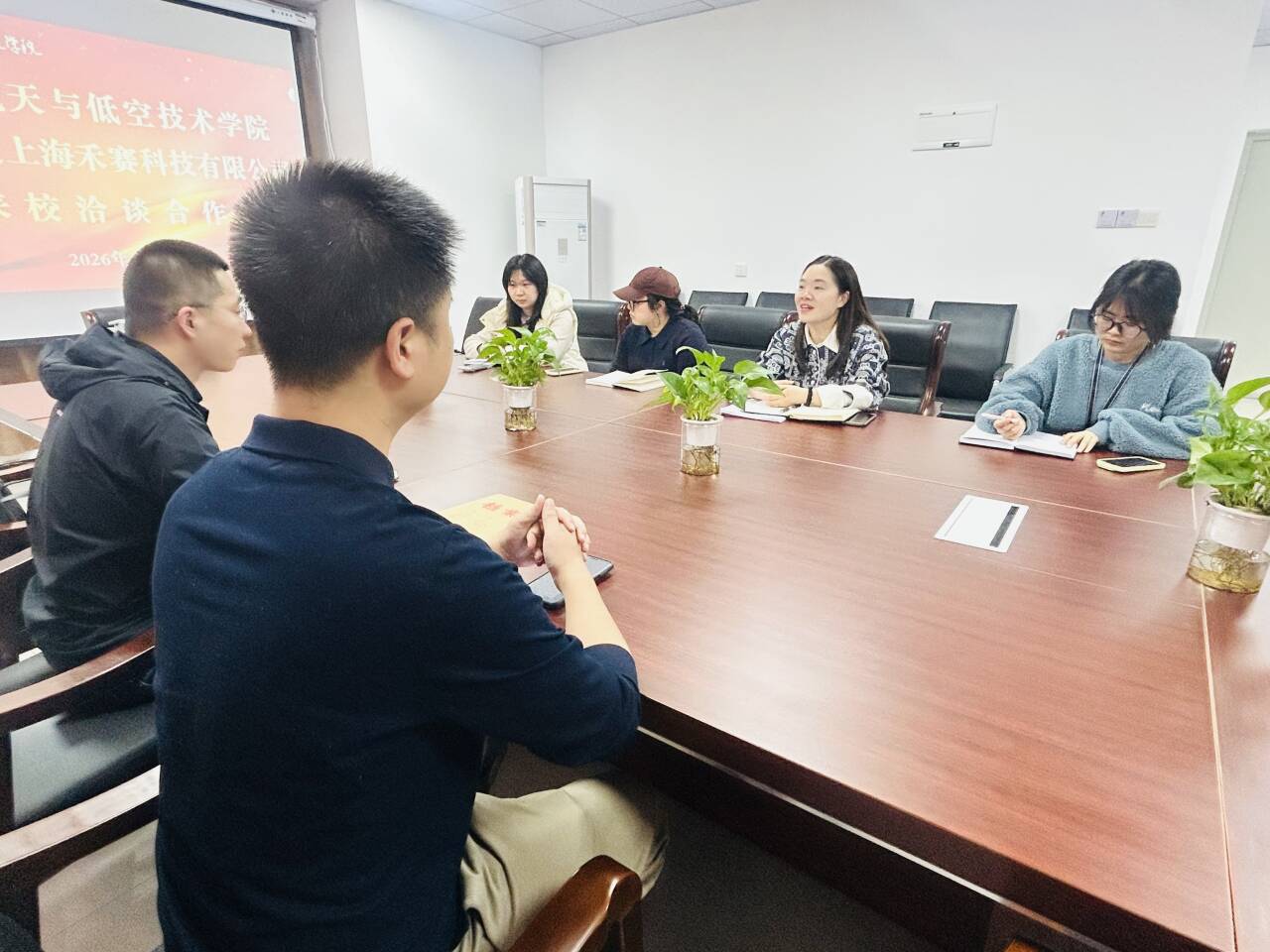 (商业航天与低空技术学院 通讯员 张莹)4月8日下午,上海禾赛科技有限公司校企合作负责人吴总一行2人到访我校,在办公楼402会议室与商业航天与低空技术学院举行实习就业岗位对接洽谈会。学院副书记杨维、2023及2024级辅导员代表唐鑫、石娟、康曦子,综合科参加会议。