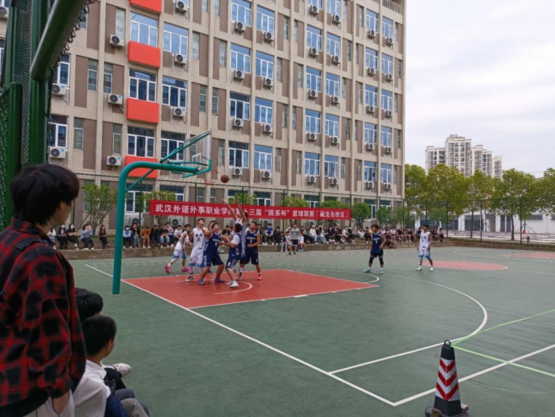 (信息技术部 讯)为了促进各学院学生的交流,增进同学之间的友谊,2022年4月20号中午12点10分,由各学院学生会主办的院系杯篮球比赛在武汉外语外事学院藏龙岛校区球场举行。