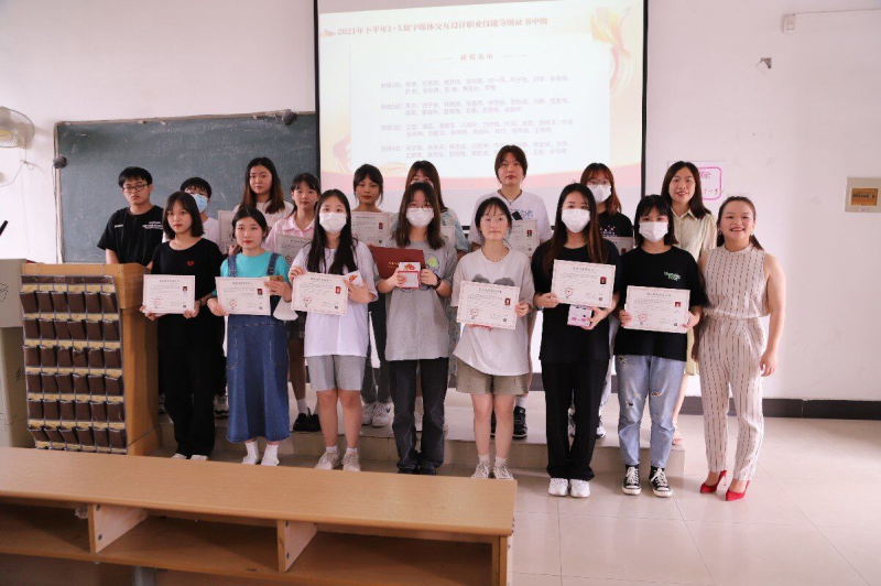 来自20级数媒二班的获奖代表熊雨微在拿到奖励后则十分感慨,回顾参加比赛的整个过程,并非一帆风顺,但收获良多。她说:“在数字媒体交互设计职业技术等级证书的备考中,刚开始我们利用手写板绘制页面图感觉到十分困难,是李颖老师一步一步地帮助我们解决问题。课后我们反复地练习绘图,每天认真翻阅题库,练习选择题,最终如愿取得了中级证书。在校园科技文化节的视频设计比赛中,感谢刘畅老师的指导,取得这个成绩,是对我现阶段学习状态的一种肯定,更是对我以后的激励和鼓舞,感谢学院老师对我们的认可。”
