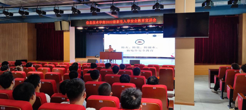 (信息技术学院 讯)9月18日上午,信息技术学院组织2022级全体学生在大学生活动中心四楼举办了新生入学教育之安全讲座,学院副书记、副主任全涛老师做主讲。