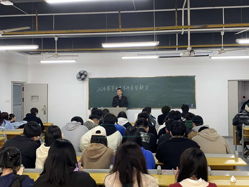 (信息技术学院 讯)应广大2024届毕业生的要求,信息技术学院于3月1日在藏龙岛校区J410教室,召开了2024届毕业生专升本答疑会,学院100余名学生代表、学院副书记全涛老师、2021级辅导员李敏老师和唐鑫老师出席了此次会议,会议由全老师主持并主讲。