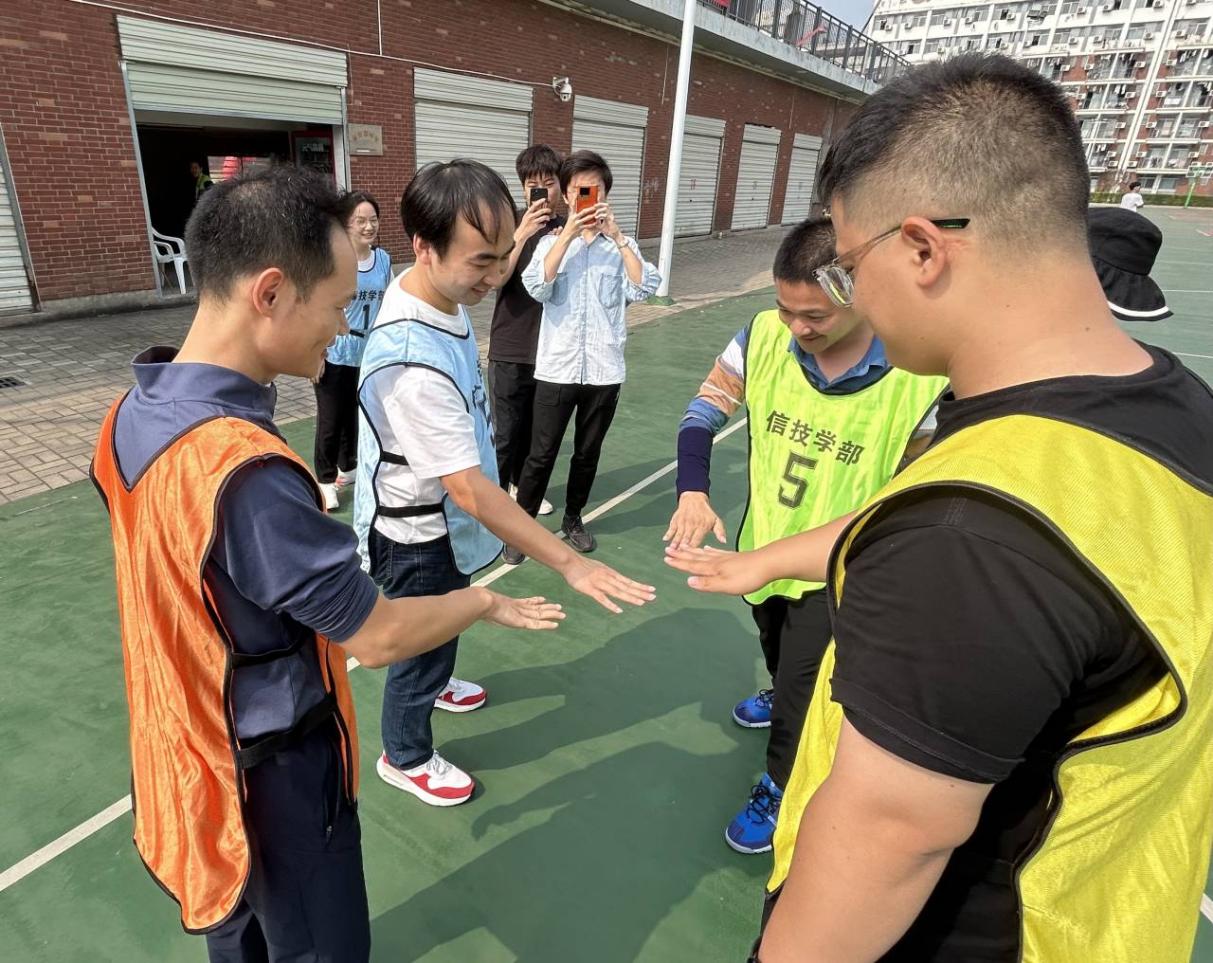 (信息技术学院 讯)10月20日中午,为了丰富教师们的业余生活,增强团队协作精神,提高身体素质信息技术学院成功举办了一场别开生面的“职工趣味篮球赛”。本次比赛由学院主办,全体教职工积极参与。比赛形式新颖,既有传统的5人篮球分组,也有趣味十足的“绕桩运球”、“接力定点投篮”等环节,让教师们在紧张的教学工作之余,尽情享受篮球带来的快乐。