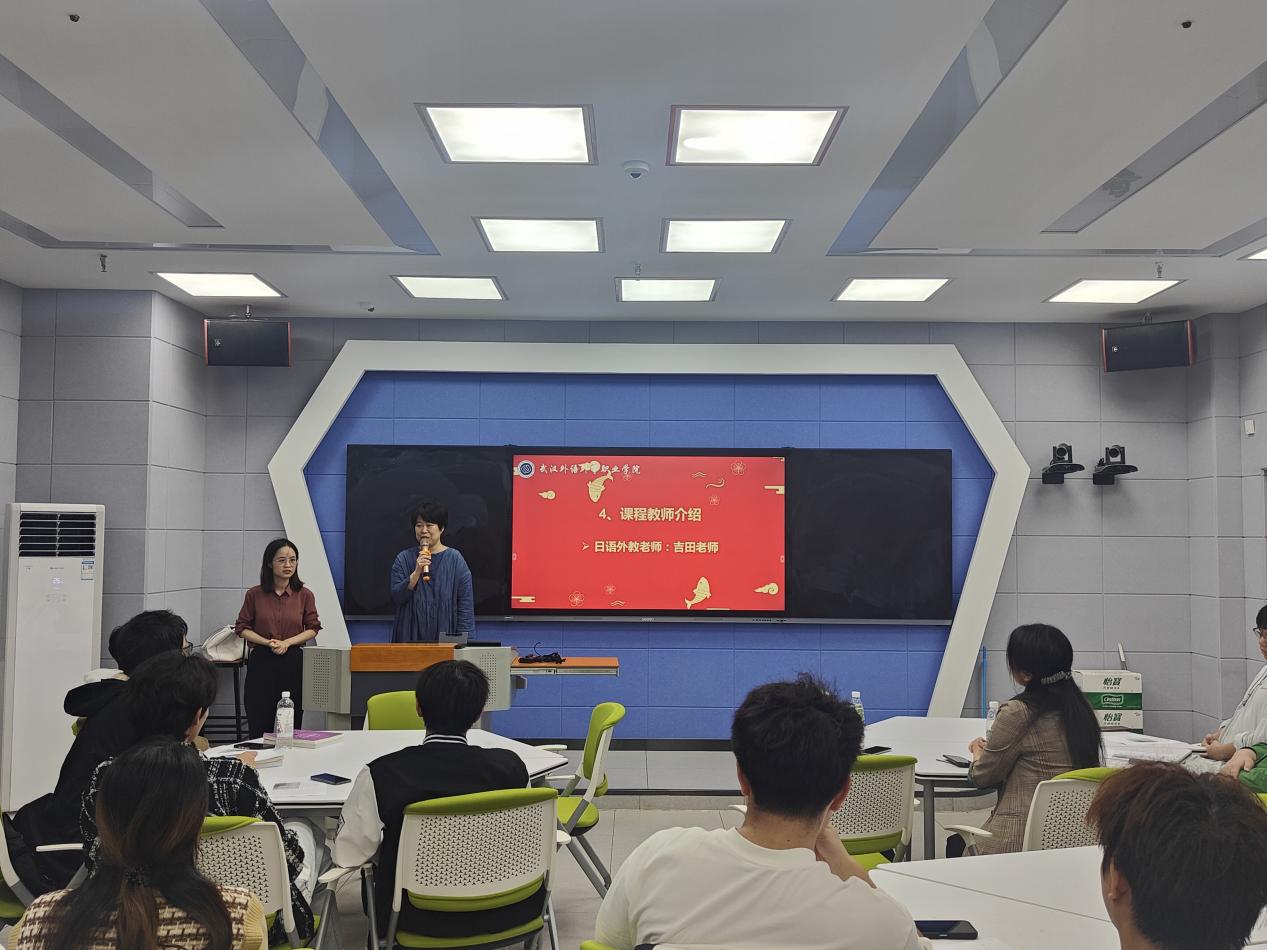 其次,日语外教吉田老师首次与22级学生见面,与同学们亲切交谈,并提出期待:希望中日国际班的同学们能打好语言基础,早日给同学们日语口语课。
