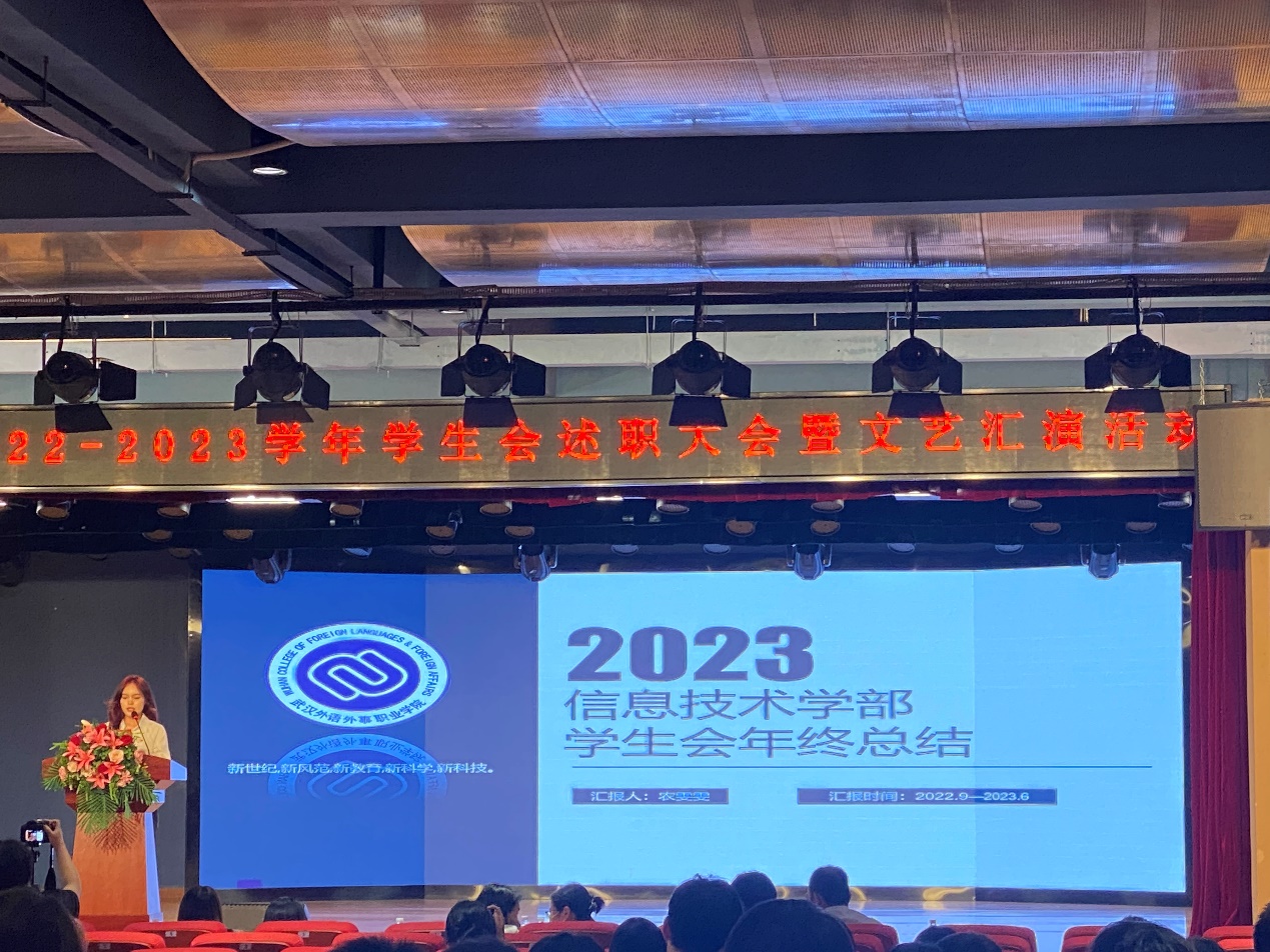 (信息技术学部 讯)2023年6月16日星期五下午5点,学院团委于大学生活动中心开展各学部分团委和学生会述职活动。此次活动学部的述职宣讲人为21级学生会主席团成员农雯雯同学。