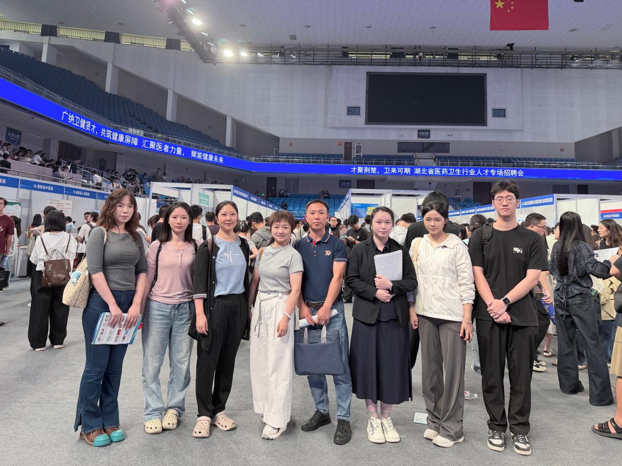为精准把握医疗行业人才需求的最新趋势,全力助推毕业生实现更充分、更高质量的就业,2025年10月12日,我校医疗与护理学院党支部副书记李勇、副院长雷霞、综合科科长郭辉及三位毕业班辅导员一行,专程前往洪山体育场举办的“2025年湖北省医药卫生行业专场招聘会”现场,零距离了解就业动态,面对面指导学生求职,积极拓展校企合作的新路径。