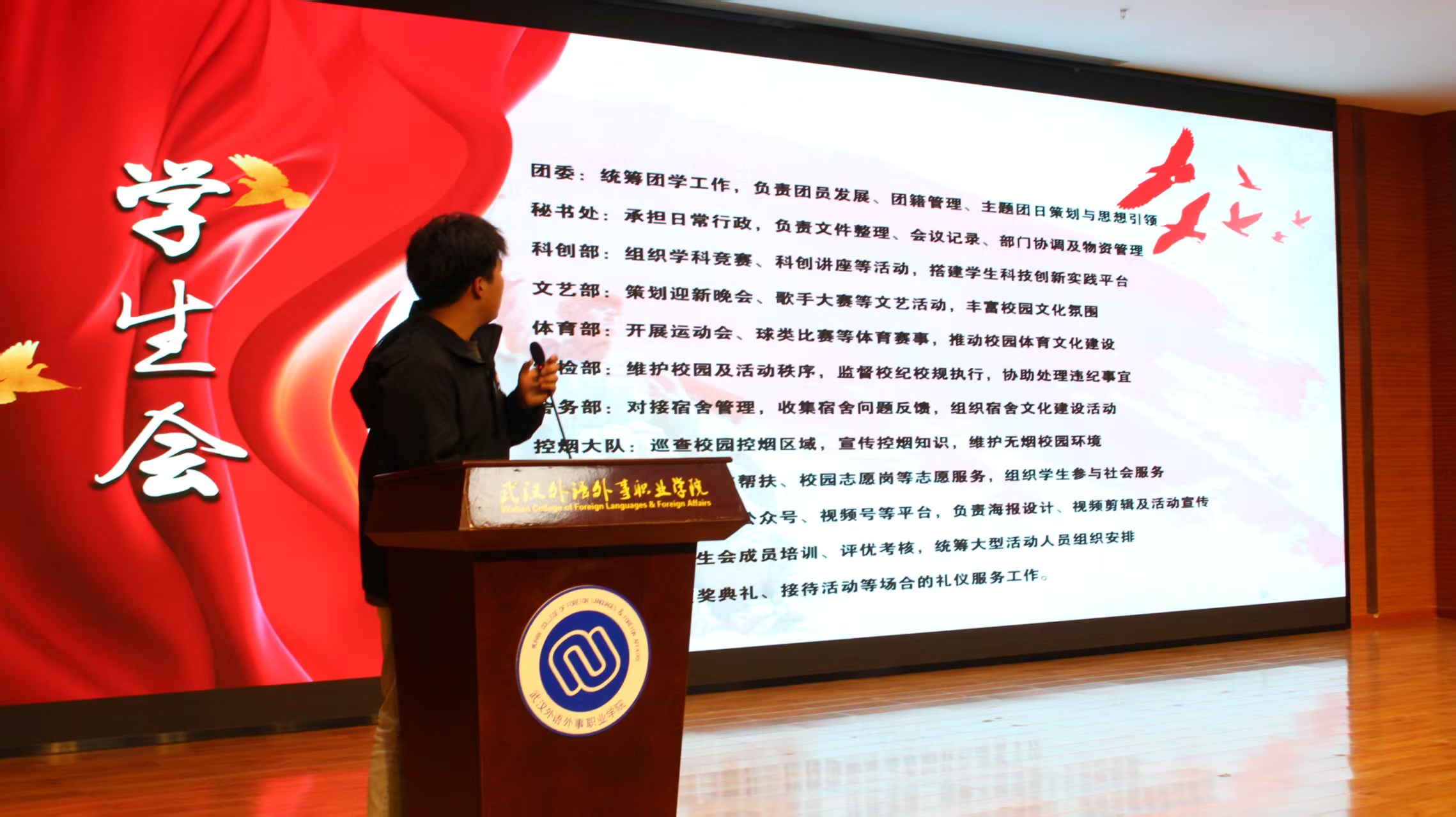 赵娜老师在致辞中祝贺两大组织的成立,并寄语学生会以服务为核心,用专业特色为活动赋能;党建会则应以红色为底色,成为青年思想引领的先锋。徐慧娟老师则聚焦于党建会的职能,强调其作为“红色思想的传播者、医护初心的践行者”的定位,鼓励各部门深入实践红色精神与专业的融合。随后,两大组织筹备组负责人分别汇报了筹备情况,详细介绍了学生会12个部门及党建会5个部门的核心职能与工作计划,使在场师生对组织架构有了清晰的认识。