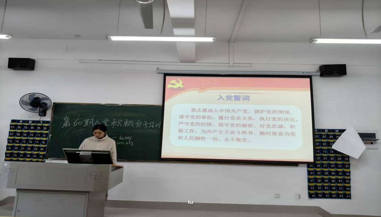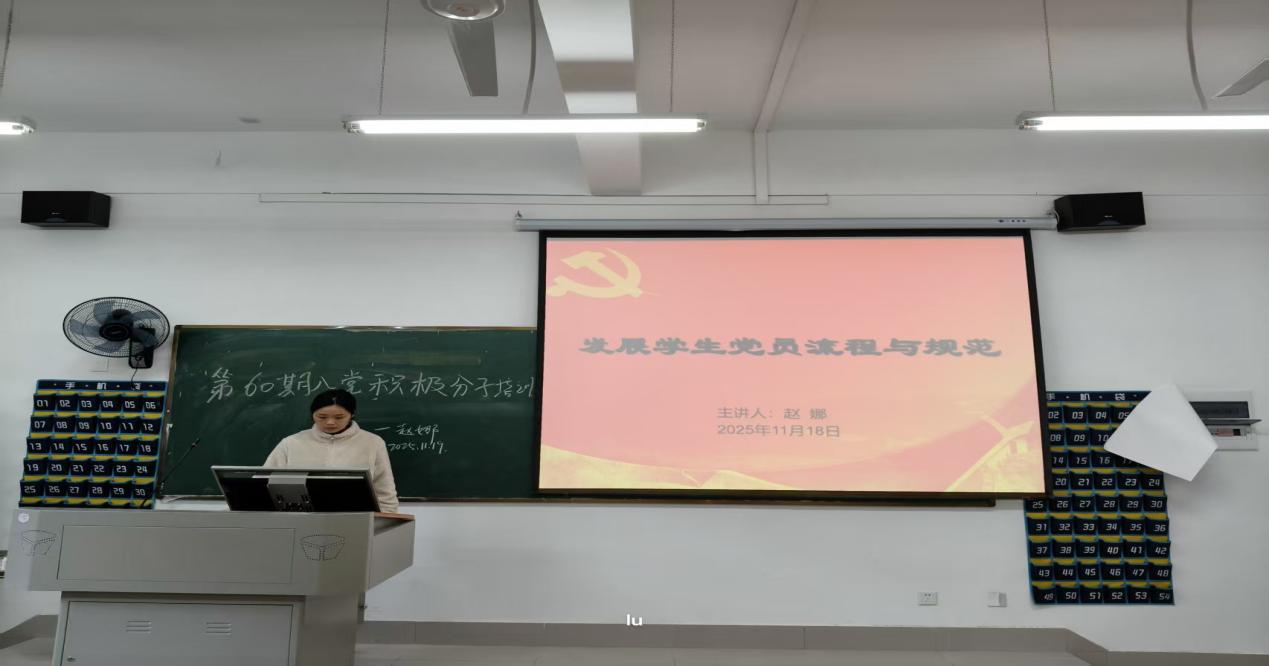 为进一步提升入党积极分子的理论素养,明确入党流程与规范,2025年11月19日中午,武汉外语外事职业学院医疗与护理学院在综合楼J336教室开展第60期入党积极分子培训党课,本次课程由赵娜老师主讲。