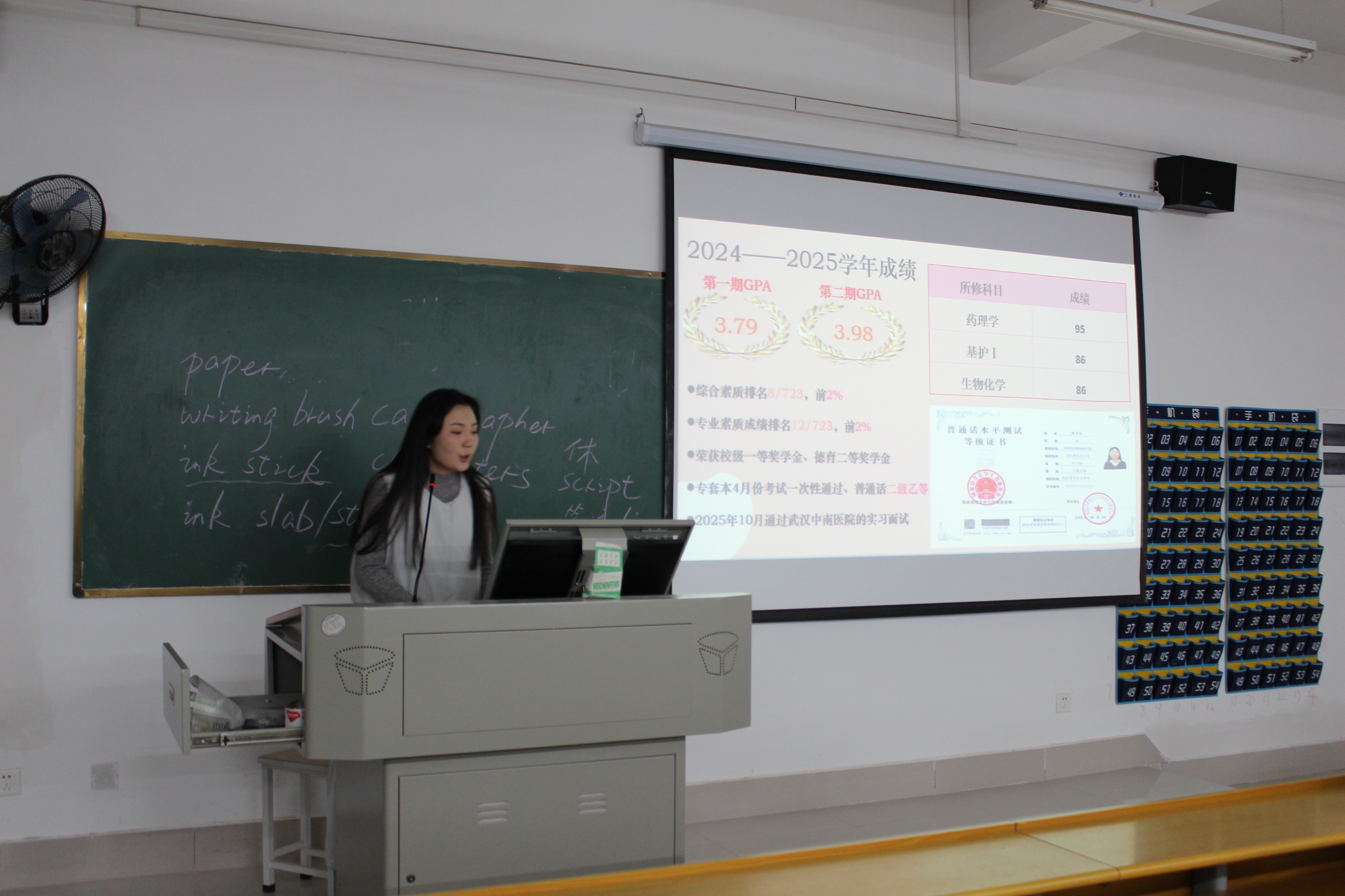为帮助大一新生更快适应大学生活,明确个人发展方向,并传承优良学风,11月18日,武汉外语外事职业学院医疗与护理学院在三教自习室成功举办了以“榜样领航,筑梦青春”为主题的优秀学长学姐分享会。此次活动特别邀请了彭末、陈子怡、周涛三位在学业上表现突出的二年级学生,为全体大一新生带来了一场内容丰富、极具启发性的经验分享会。