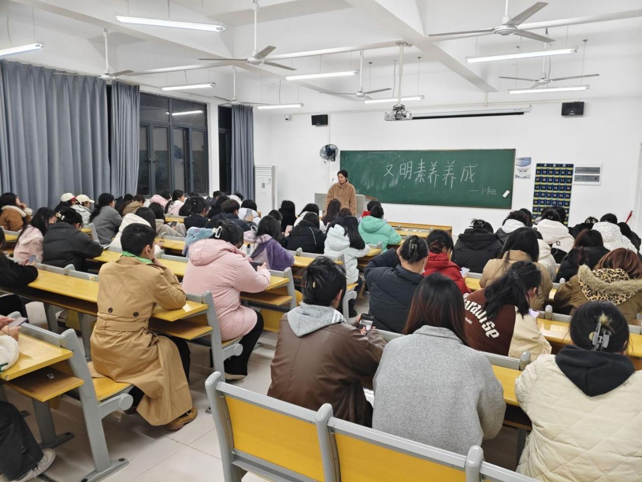 作为学院学生管理与素养培育举措,本次主题班会紧扣医护专业特性与学生成长实际,筹备阶段由学工办统一部署,要求辅导员结合专业定制内容,确保活动有制度严谨性与专业针对性。班会开始,辅导员以“文明素养是医护职业底色”为切入点,通过播放纪实短片、分享职业案例,让学生感受文明素养是校园生活准则与医护职业根基。不少学生观看后表示,认识到文明用语和规范举动在医患沟通与临床工作中至关重要。