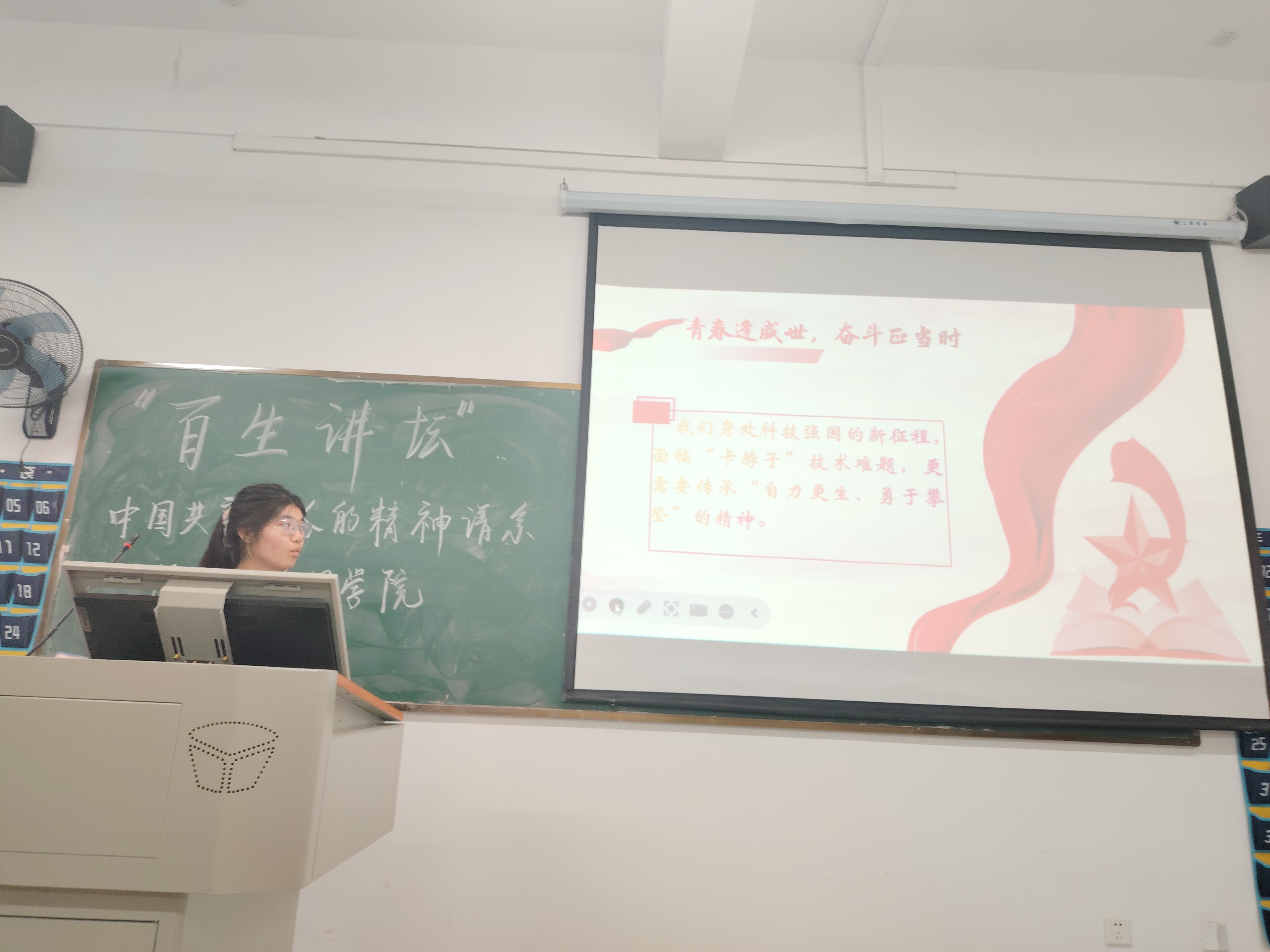 活动开始,学院分团委书记赵娜老师发表致辞。她指出,“百声讲坛” 是学校着力打造的文化育活动,旨在通过演讲的方式进行“红色传承、青春建功和理论践行”为主题的思想教育活动。通过传递思想、分享经验,为学生搭建 “聆听多元声音、碰撞思想火花” 交流平台。赵娜老师强调,青年学生正处于成长成才的关键时期,希望大家以此次讲坛为契机,主动汲取知识养分、激发思考活力,将所学所悟转化为成长动力,在专业学习与社会实践中勇担使命、砥砺前行。
