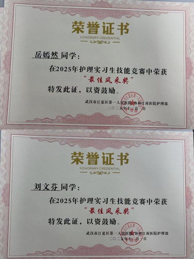我校智能医美与护理技术学院共有七名同学在此次实习中获得奖项,其中五名同学(杜俊德、孙忠昊、徐占珂媚、徐玲雪、候琦)以勤奋踏实的工作态度,积极向上的学习精神获得“优秀实习生”;另两名同学(刘文芬、岳嫣然)在护理部举办的护理实习生技能大赛中表现优异,获得“最佳风采奖”。